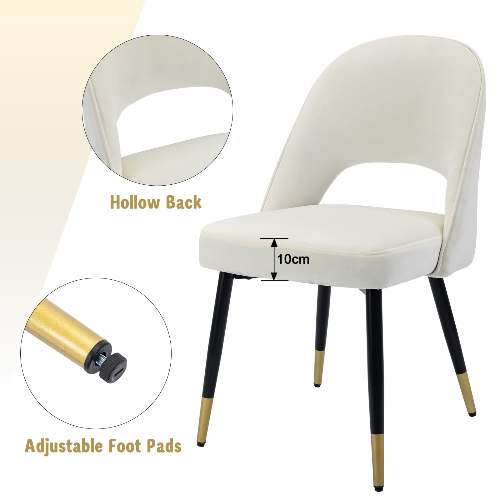 chairus Chaises de Salle à Manger sans Accoudoirs Lot de 2 Chaise de Bureau en Velours Moderne Chaise Rembourrée pour Cuisine Salon (Beige-2)