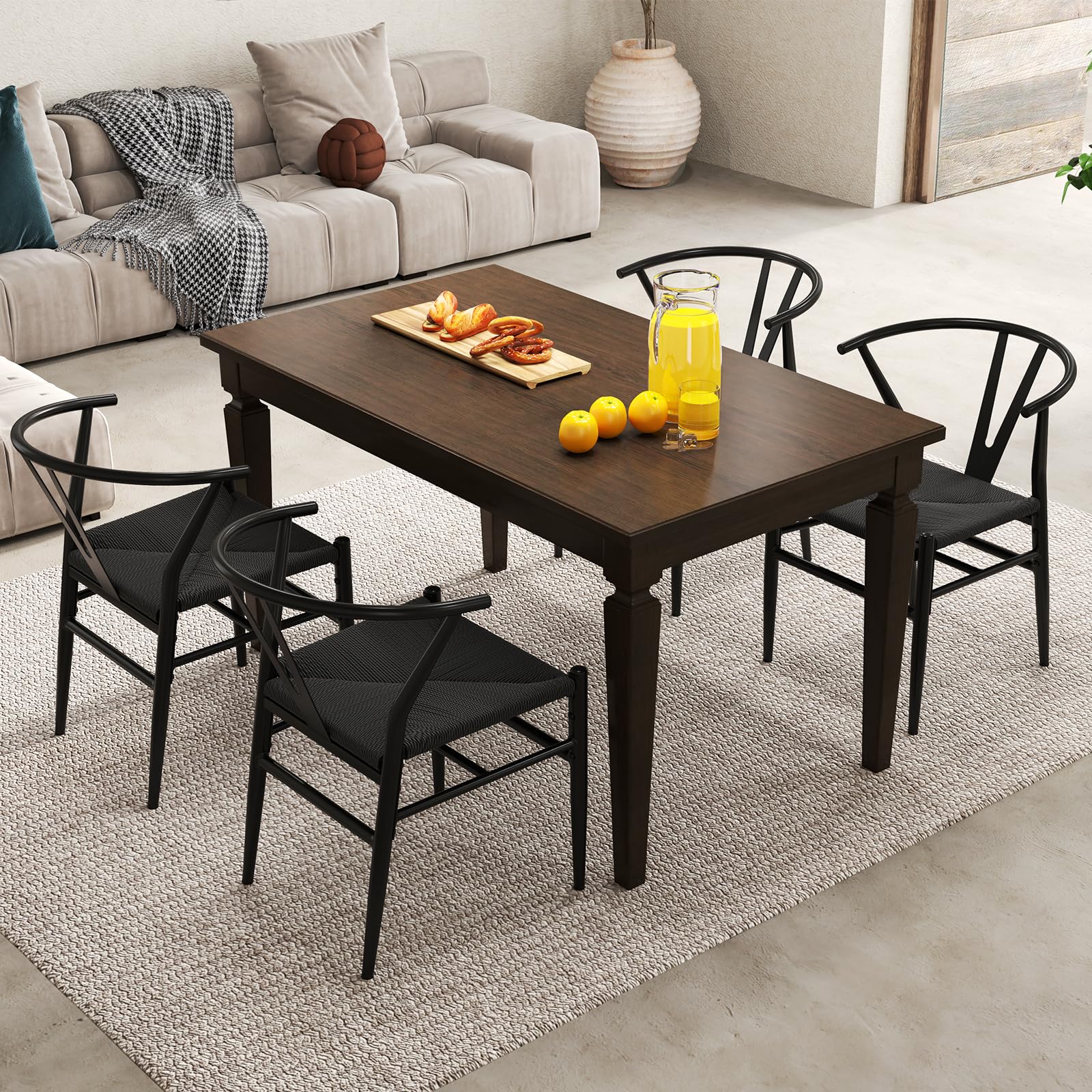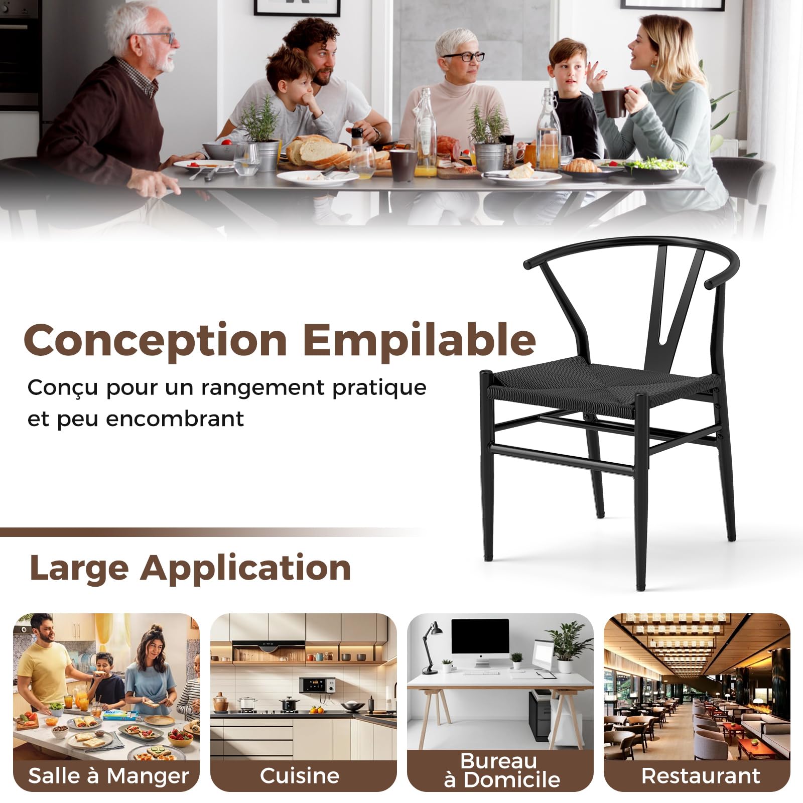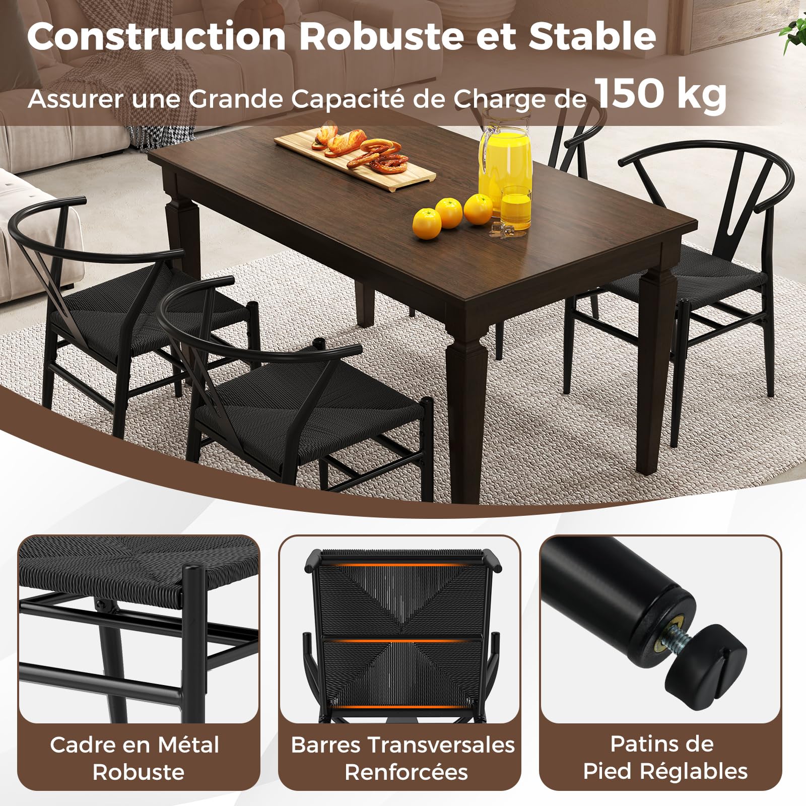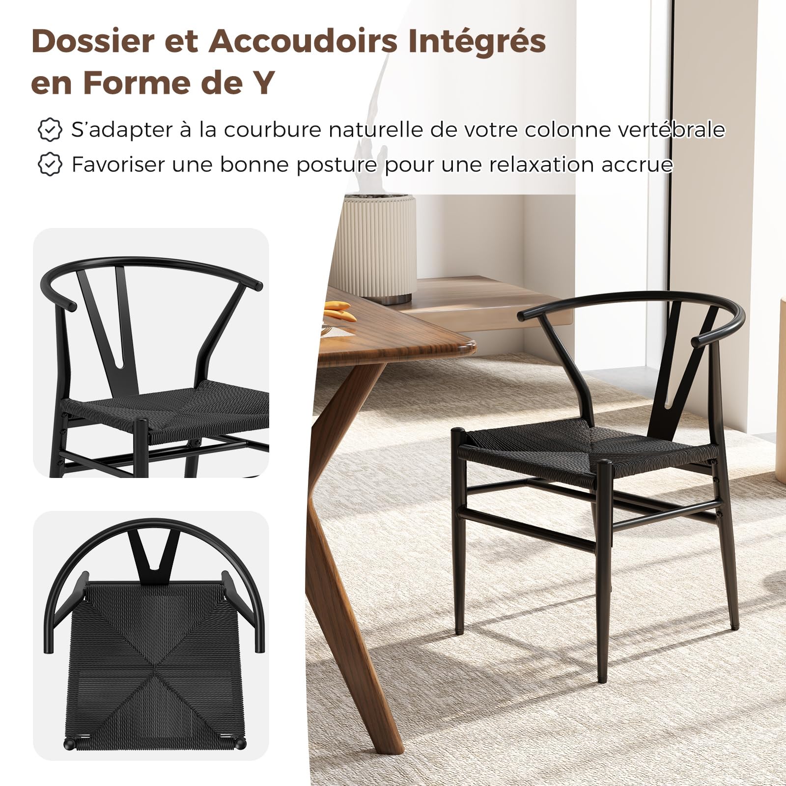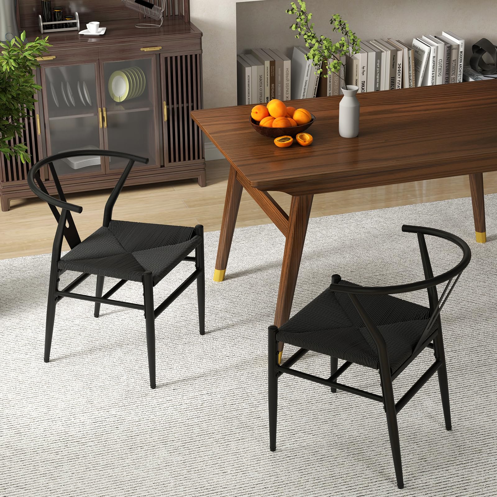 COSTWAY Chaise Wishbone Style Scandinave, Chaises avec Cadre en Métal, Dossier en Y, Assise Tressée, Chaise Design pour Salle à Manger, Salon, Bureau (Noir,2)