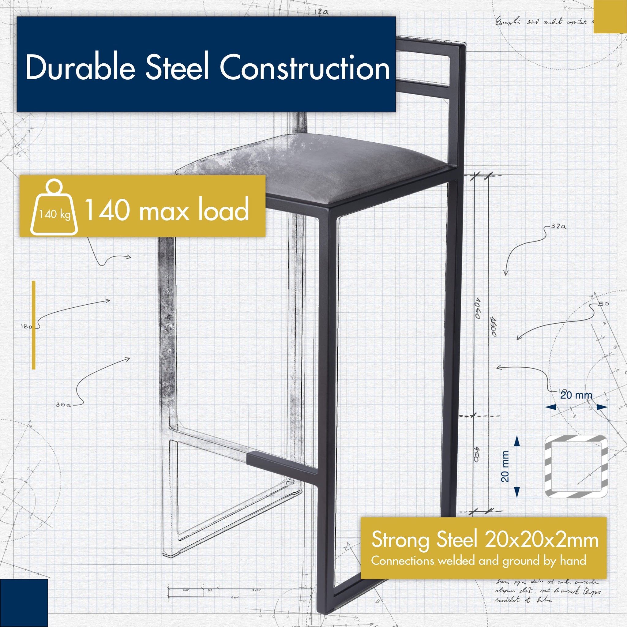 - Qualité artisanale – La structure est soigneusement soudée à la main, et finie avec soin, ce qui assure que le tabouret conserve sa qualité supérieure même après des années d'utilisation quotidienne.