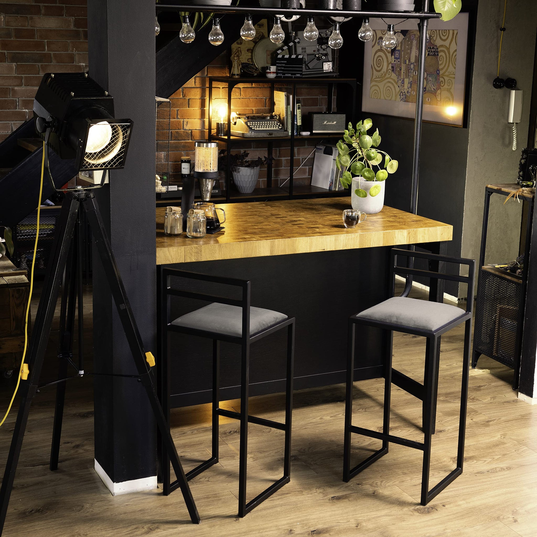 FERRO modern design Tabouret Bar Cuisine 95cm Noir - Fatto a Mano Chaise de Bar Lot de 2 - Stile Loft