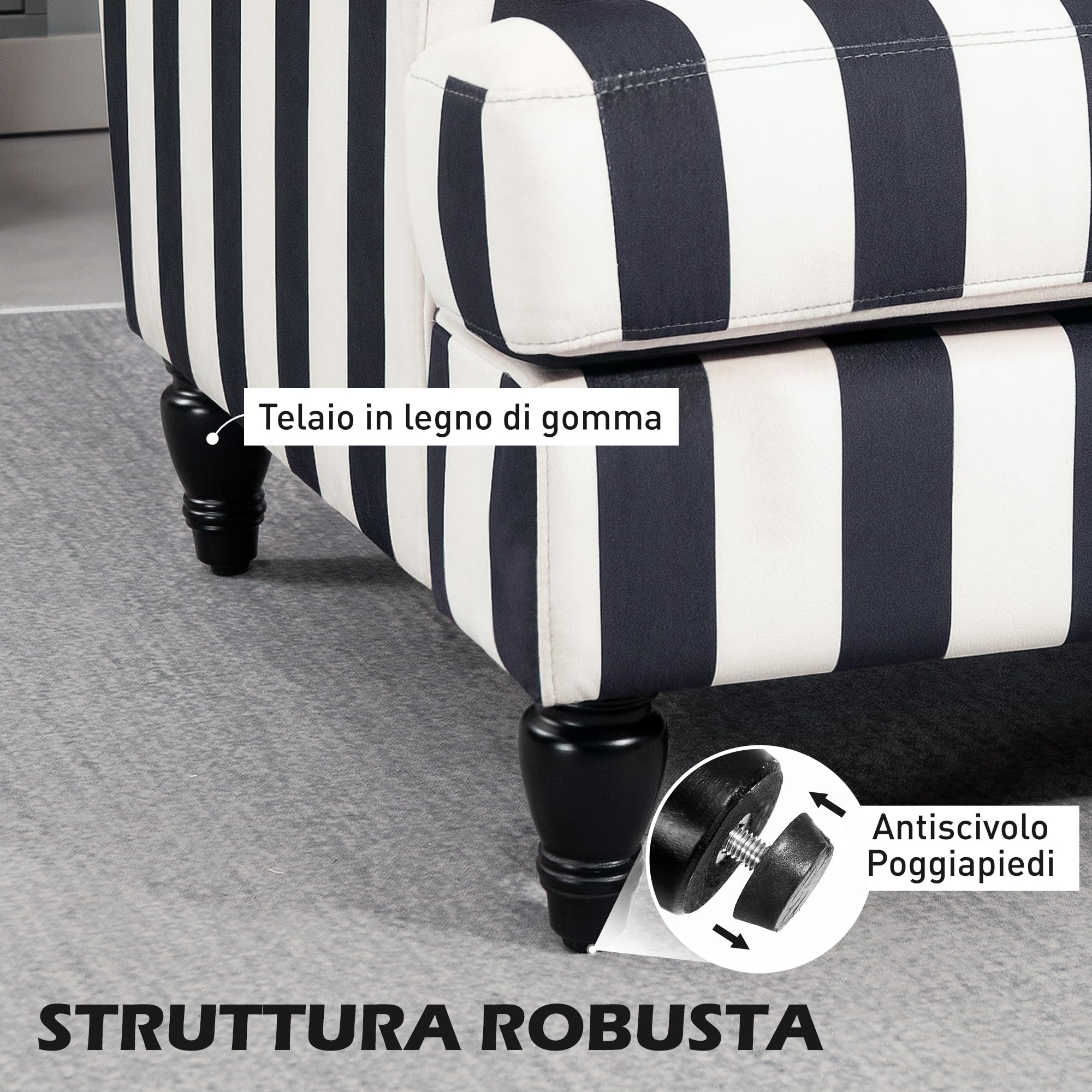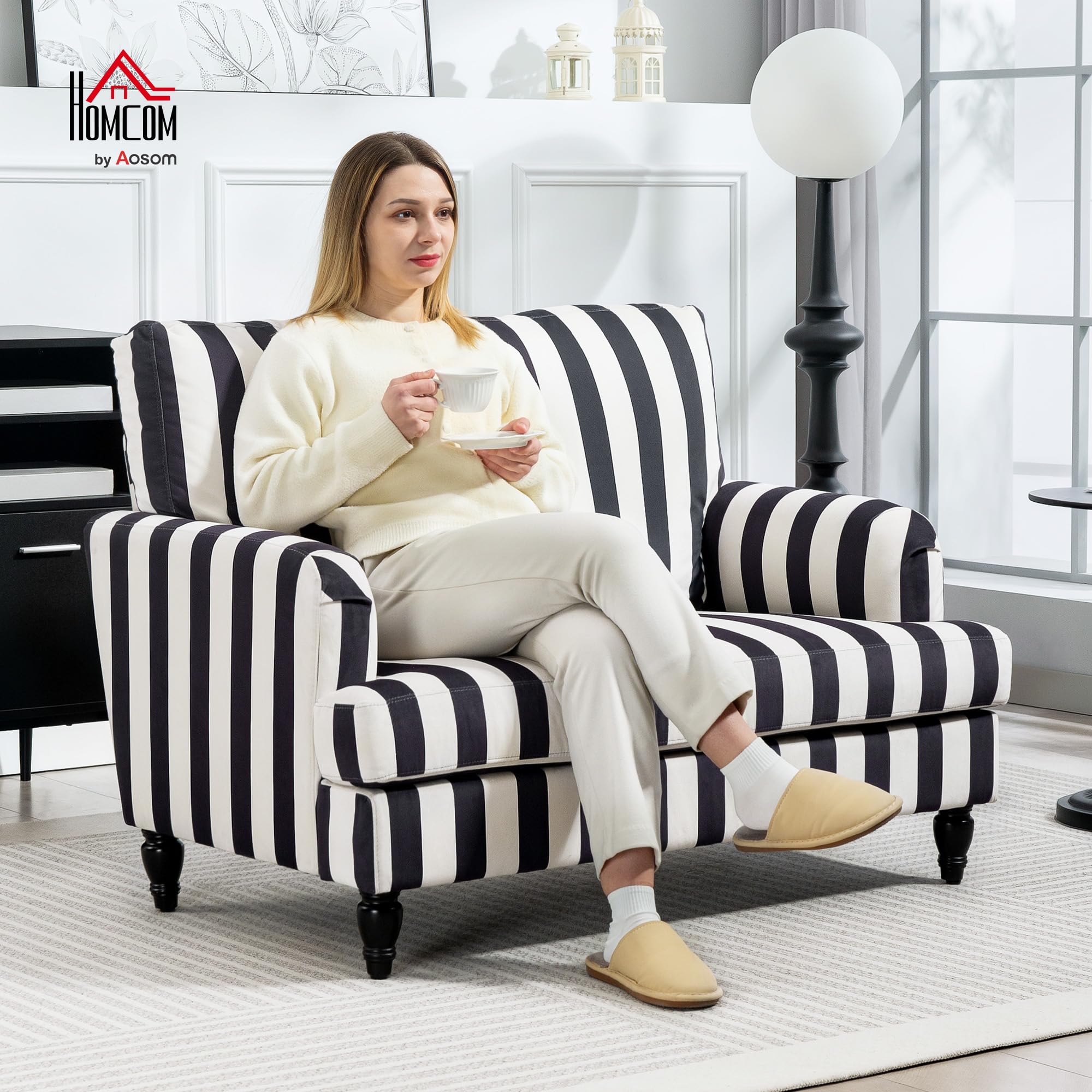 HOMCOM Fauteuil de salon avec assise large et accoudoirs longs, fauteuil en velours à rayures avec rembourrage épais et ressorts en S, 115 x 82 x 82 cm, noir et blanc