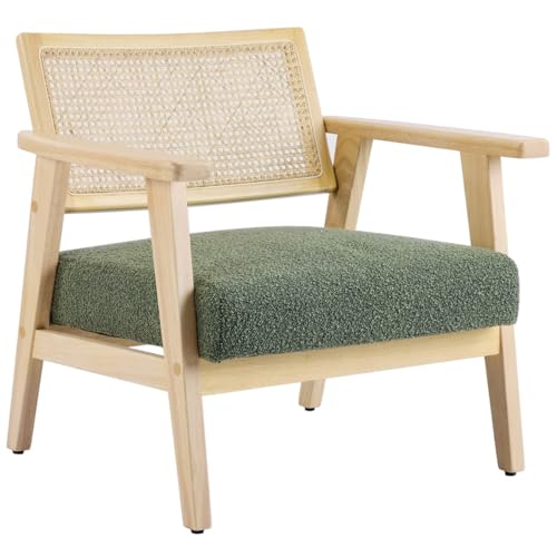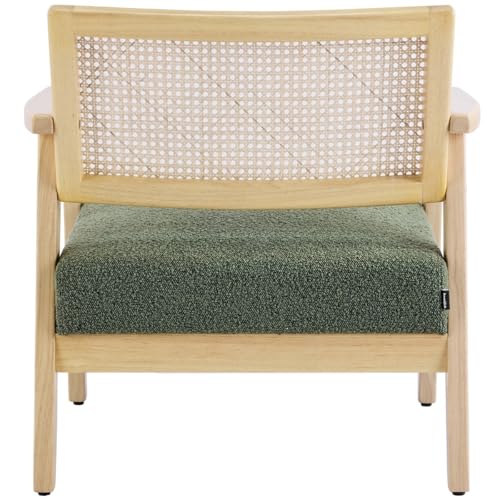 HOMIFAB Fauteuil en Tissu bouclé Vert et cannage Naturel - Tim