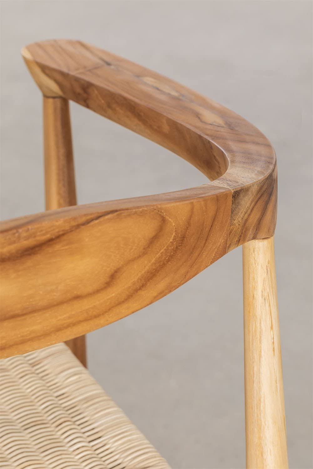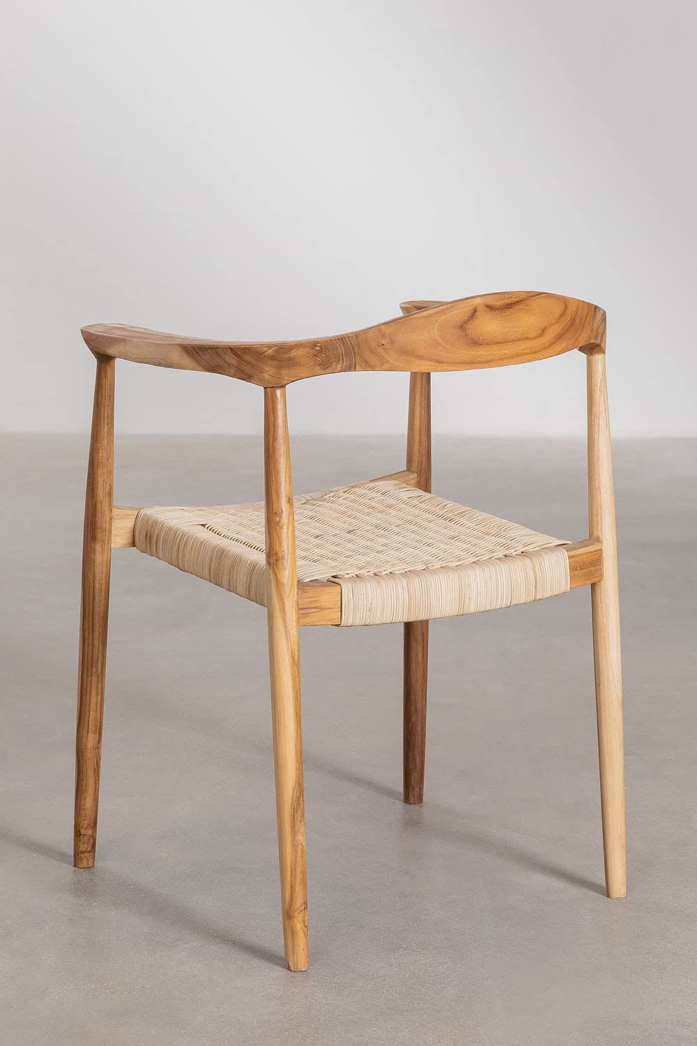 Détails: Le Pack de 2 Chaises de Salle à Manger avec Accoudoirs Kiemer est un fidèle reflet du style naturel qui est actuellement très à la mode. Des pièces originales, confortables et parfaites, car elles s'adaptent parfaitement à vous. Il se compose de deux chaises, et dispose d'une structure en bois de teck et d'une assise tressée en rotin, ce qui apportera personnalité et style à la décoration de votre maison. Le confort maximal est assuré par les accoudoirs, qui vous permettent de profiter confortablement de longues discussions après le repas. De plus, il est équipé de patins de protection en polypropylène pour protéger tous types de sols contre d'éventuels dommages. Il est polyvalent et fonctionnel, idéal pour être combiné dans les salles à manger et les cuisines. Obtenez ce magnifique pack et faites de cet espace un lieu plein d'admiration. Pour plus d'informations, consultez le produit unitaire. Nous conseillons d'utiliser un chiffon humide pour le nettoyage et d'éviter l'utilisation de produits chimiques.