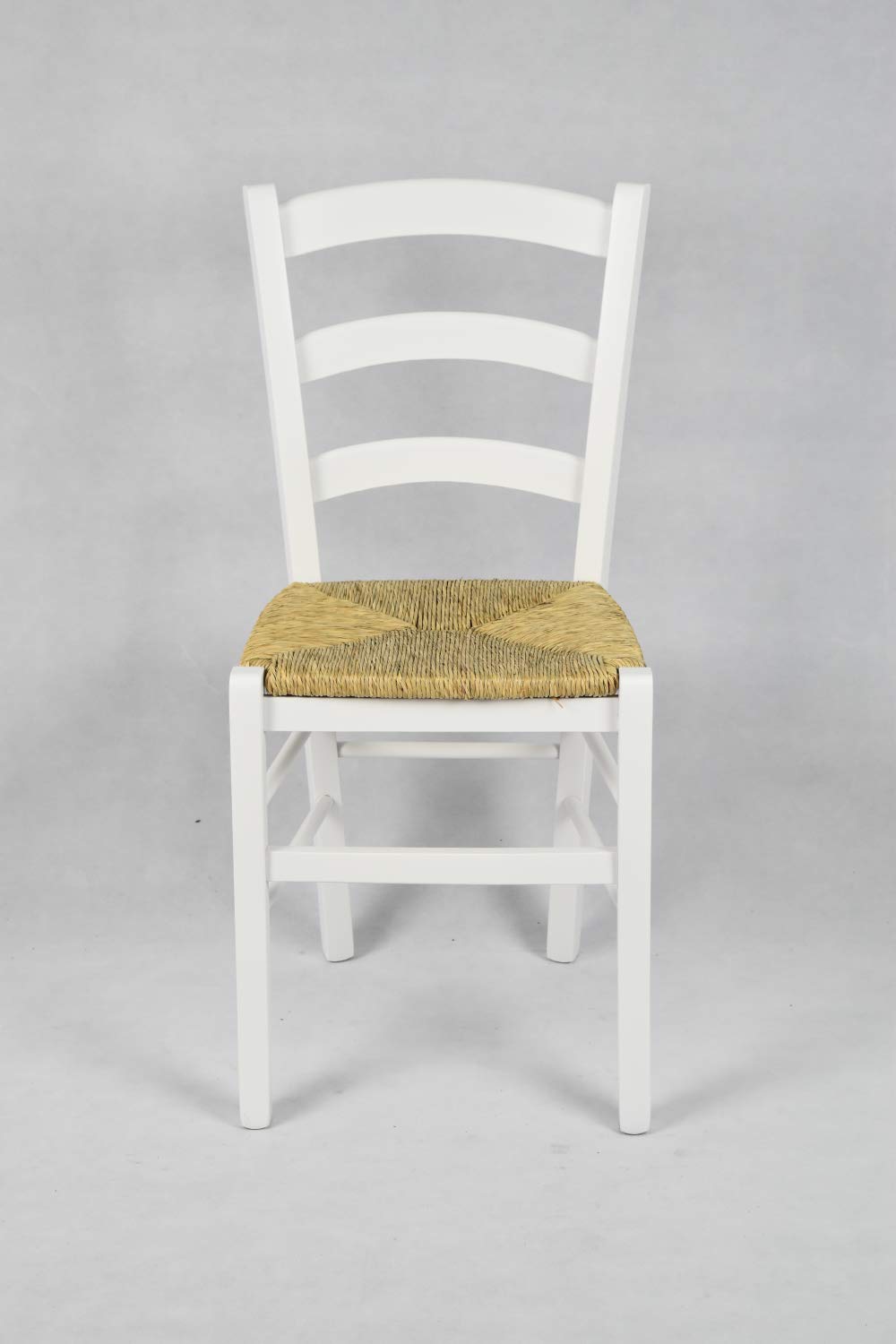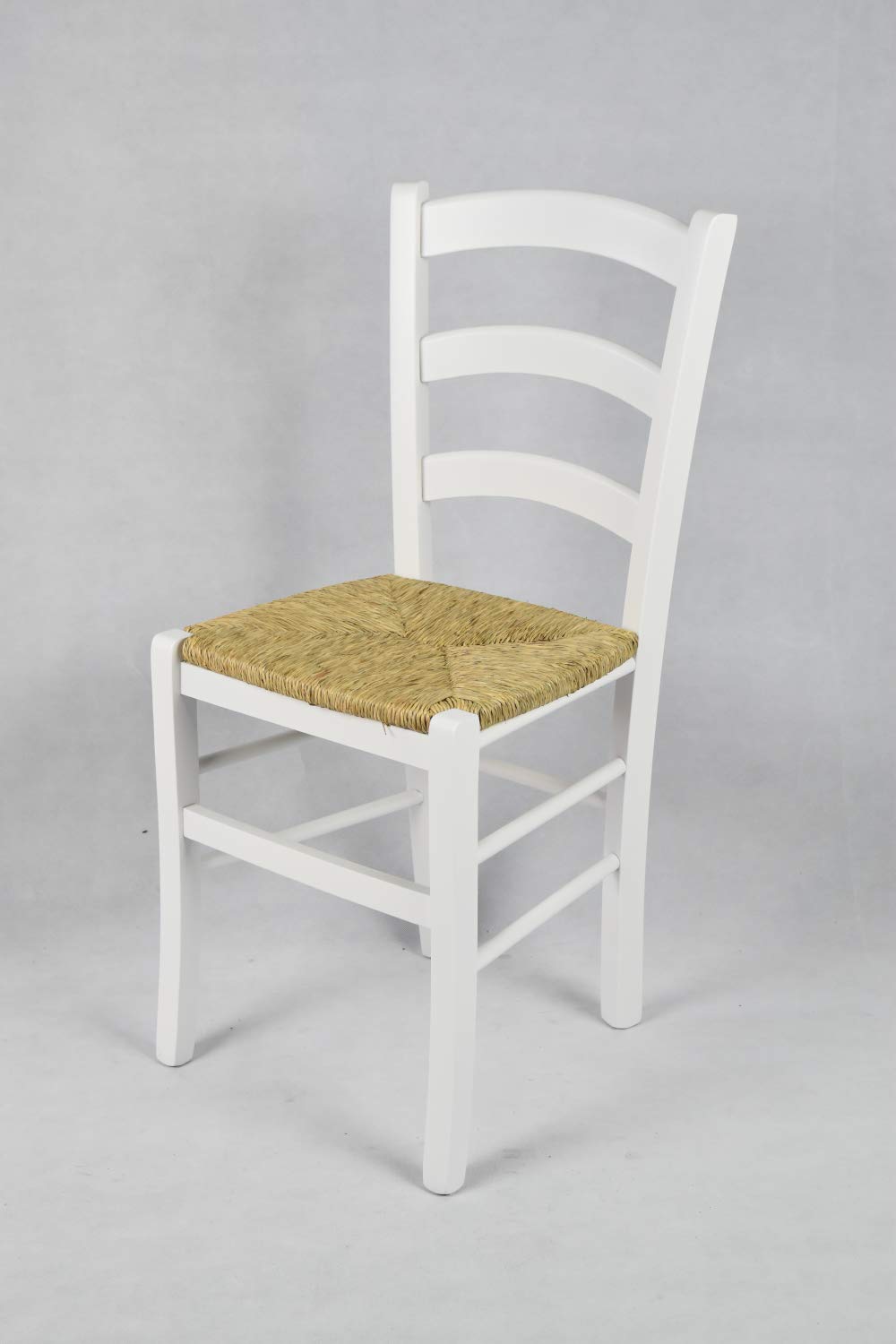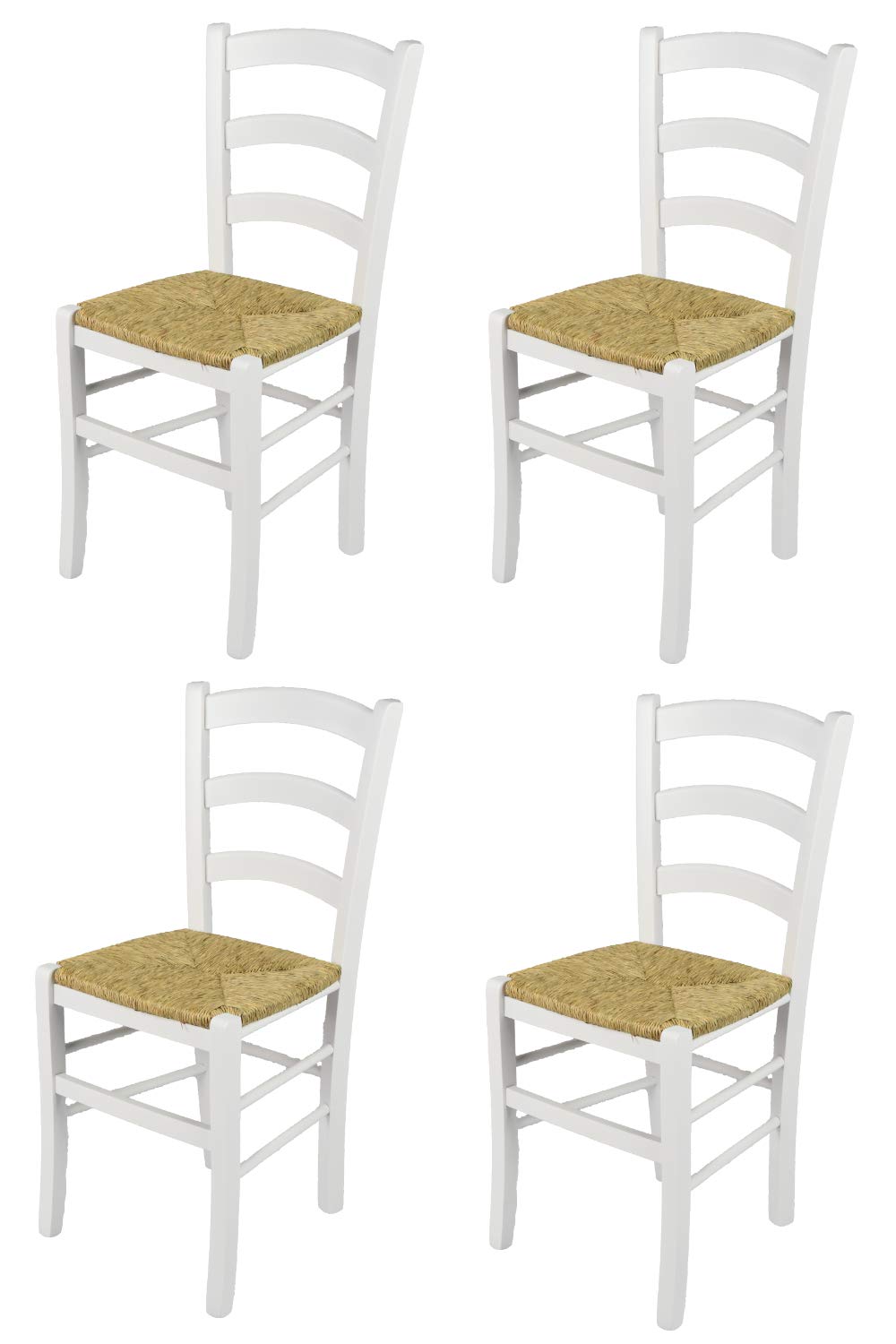 t m c s Tommychairs - Set 4 chaises Venezia pour Cuisine, Bar et Salle à Manger, Robuste Structure en Bois de hêtre laqué en Couleur Blanc et Assise en Paille