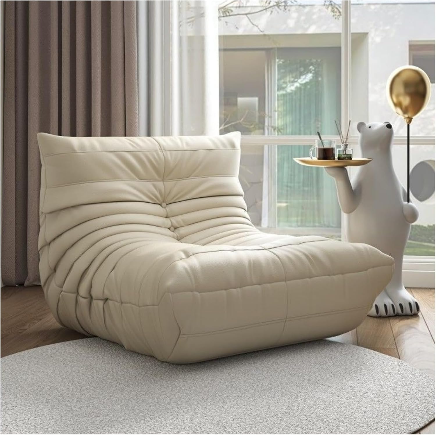 Togo – Chaise longue en daim doux, mousse de qualité supérieure, canapé de sol paresseux, pouf d'angle, marron – Fauteuil d'appoint sans accoudoirs pour salon, bureau (beige)