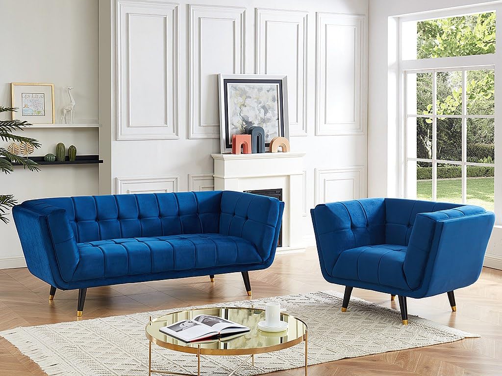 Avec son assise capitonnée en velours garnie de mousse polyuréthane haute résiliance, ce canapé est une véritable invitation à la détente ! Son capitonnage lui donne un look élegant et cosy. Ses pieds noir avec une pointe dorée apporte une touche tendance.
