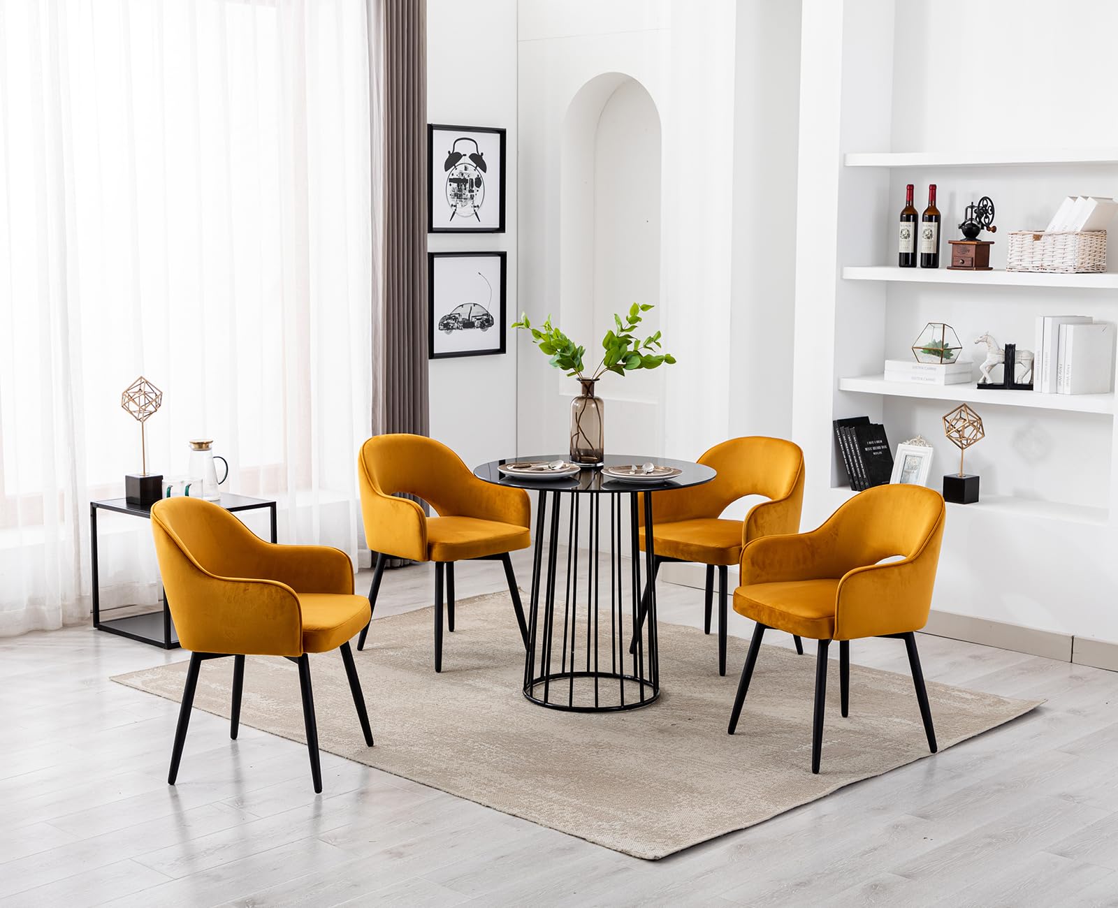 Ya-Home Lot de 2 Chaise de Salle à Manger en Velours Chaise de Cuisine Pivotante avec Accoudoirs Fauteuil à Manger pour Cuisine/Salle de Séjour, Jaune