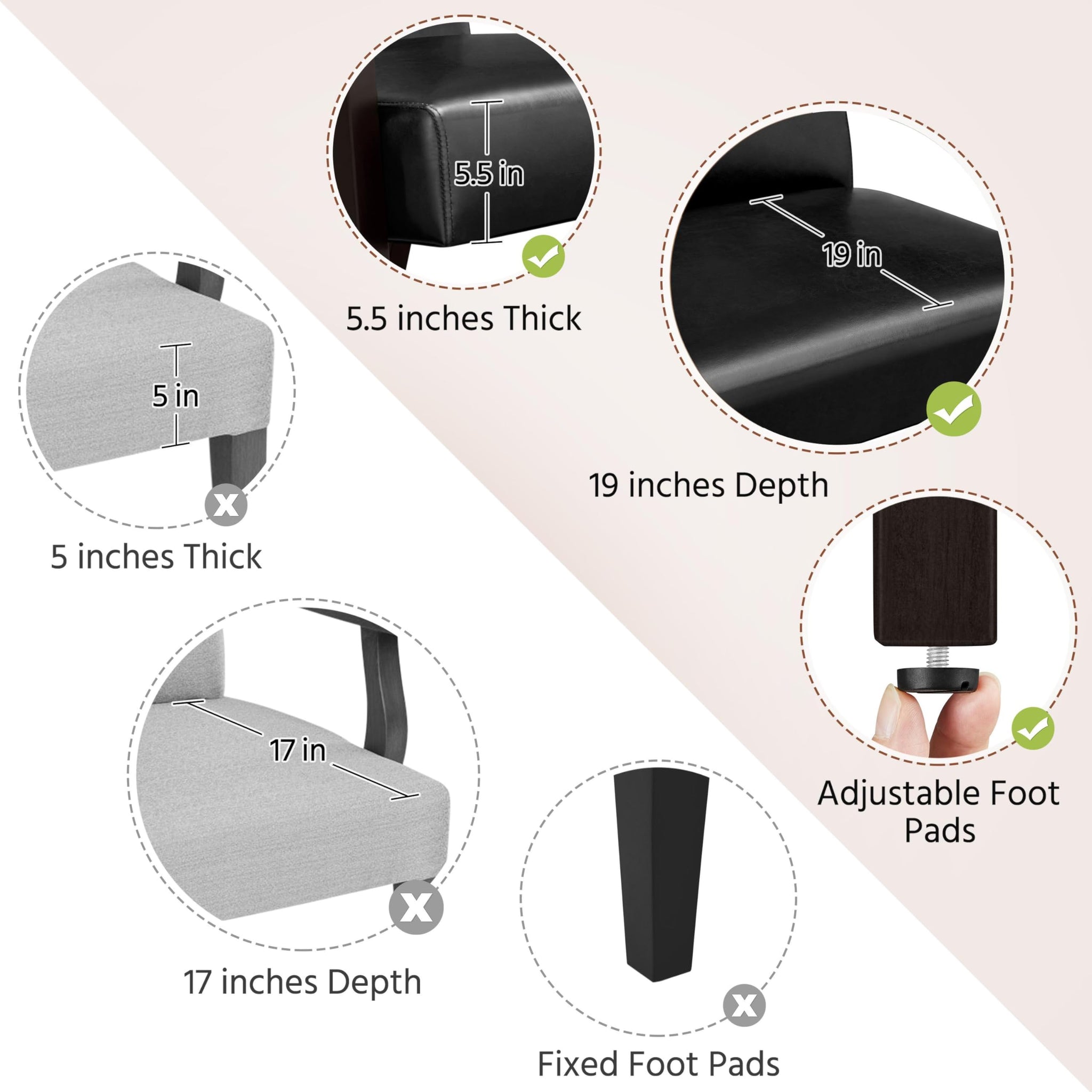 - Patins réglables en hauteur : Grâce aux patins de protection ajustables, ce fauteuil d’appoint de salon s’avère stable sur les sols irréguliers. Les patins protègent aussi le sol des rayures lorsqu’on doit le déplacer.