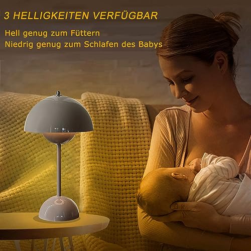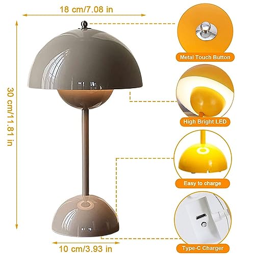 Lampe de table LED rouge foncé en forme de pot de fleurs – Lampe de bureau tactile sans fil à intensité variable avec batterie – 3 modes de luminosité – Lumière décorative rétro pour chambre à