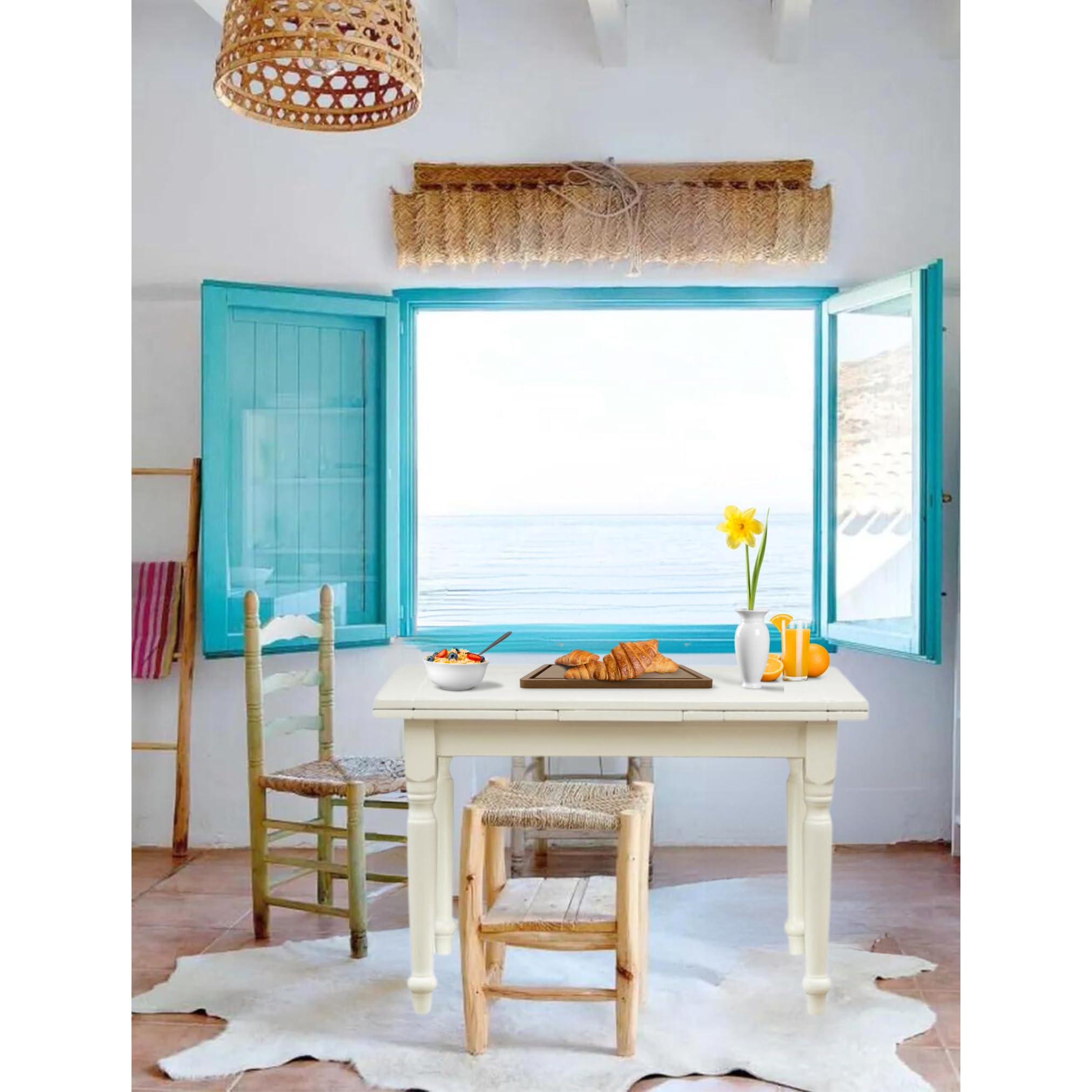 - MATÉRIAUX DE QUALITÉ: La table à manger extensible est en noyer massif, résistant à un usage quotidien et particulièrement durable. Les pieds ont une finition de peinture blanche antique