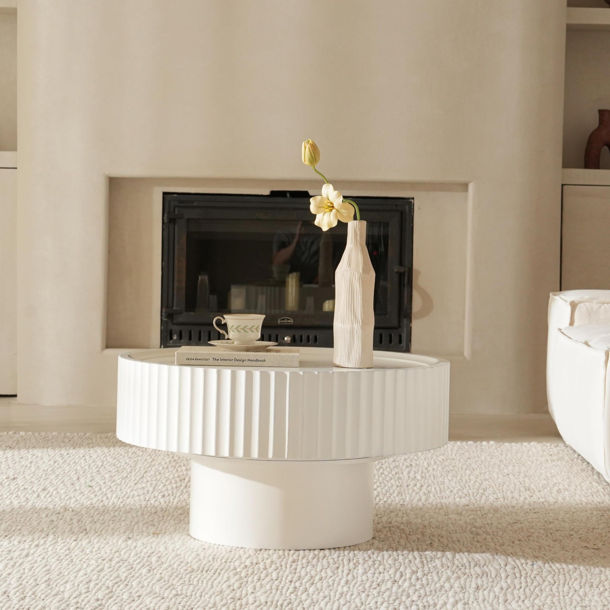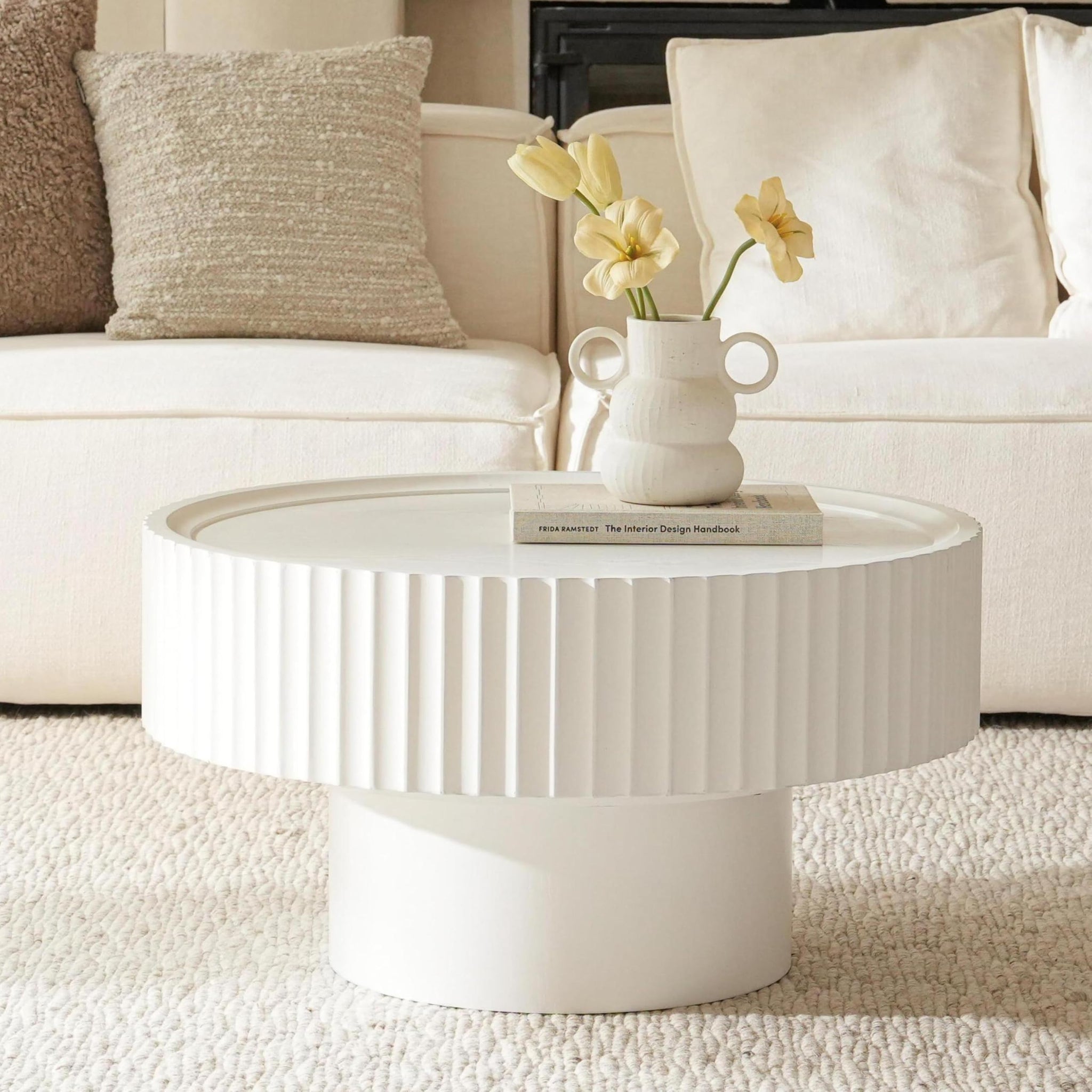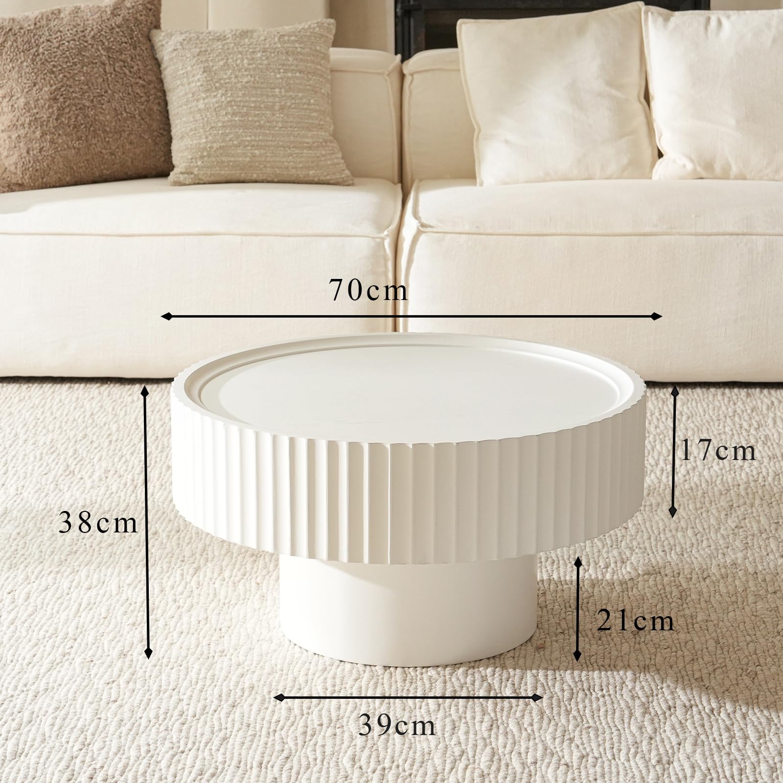 Cagnolier Table Basse Ronde Blanche, Table de Salon avec Design strié, Table Basse Blanche en Forme de Champignon avec Les Dimensions φ70 × 38 cm, Table de Salon en pin pour Salon, Chambre et Balcon