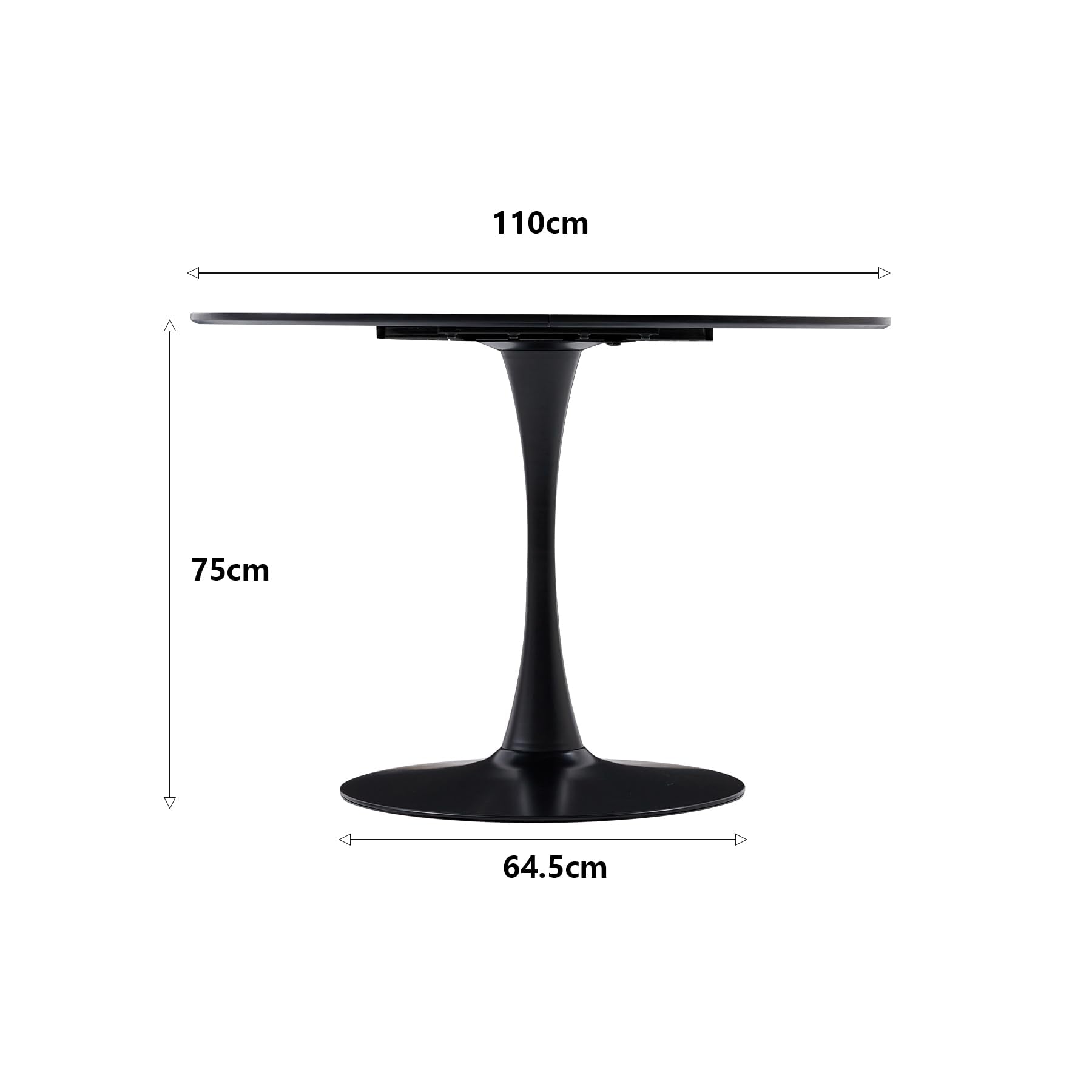 GrandCA HOME Table de Salle à Manger Ronde Moderne Noir de 110 cm avec Piédestal Design Tulipe, Table de Loisirs Mid-Century pour Cuisine, Salle à Manger et Salon