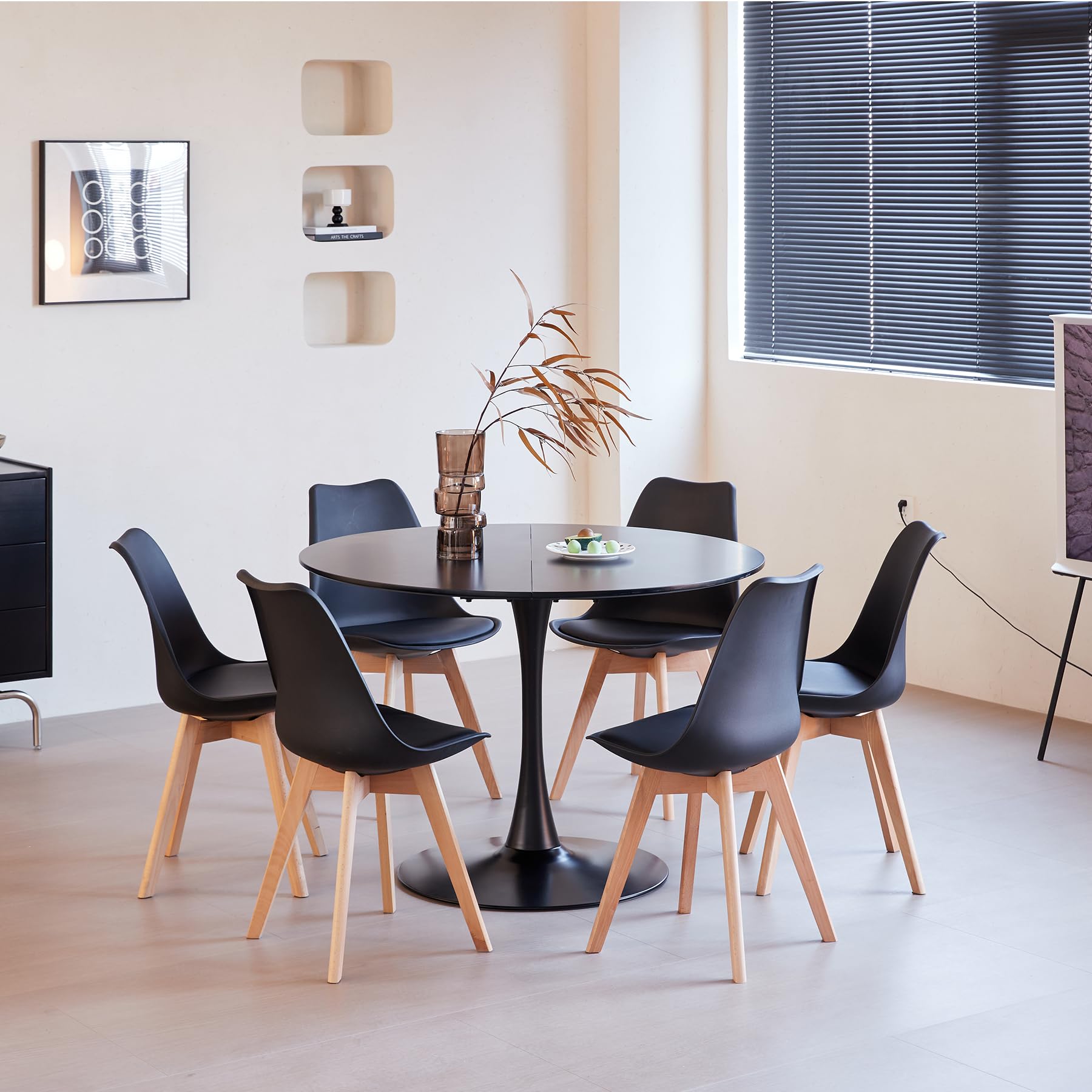 • 【Tables de cuisine】 La table à manger ronde avec une base a un diamètre de 110 cm et peut accueillir confortablement 2 à 6 personnes. C'est donc une option idéale pour les petits espaces. La hauteur de 75cm est pratique pour manger ou travailler