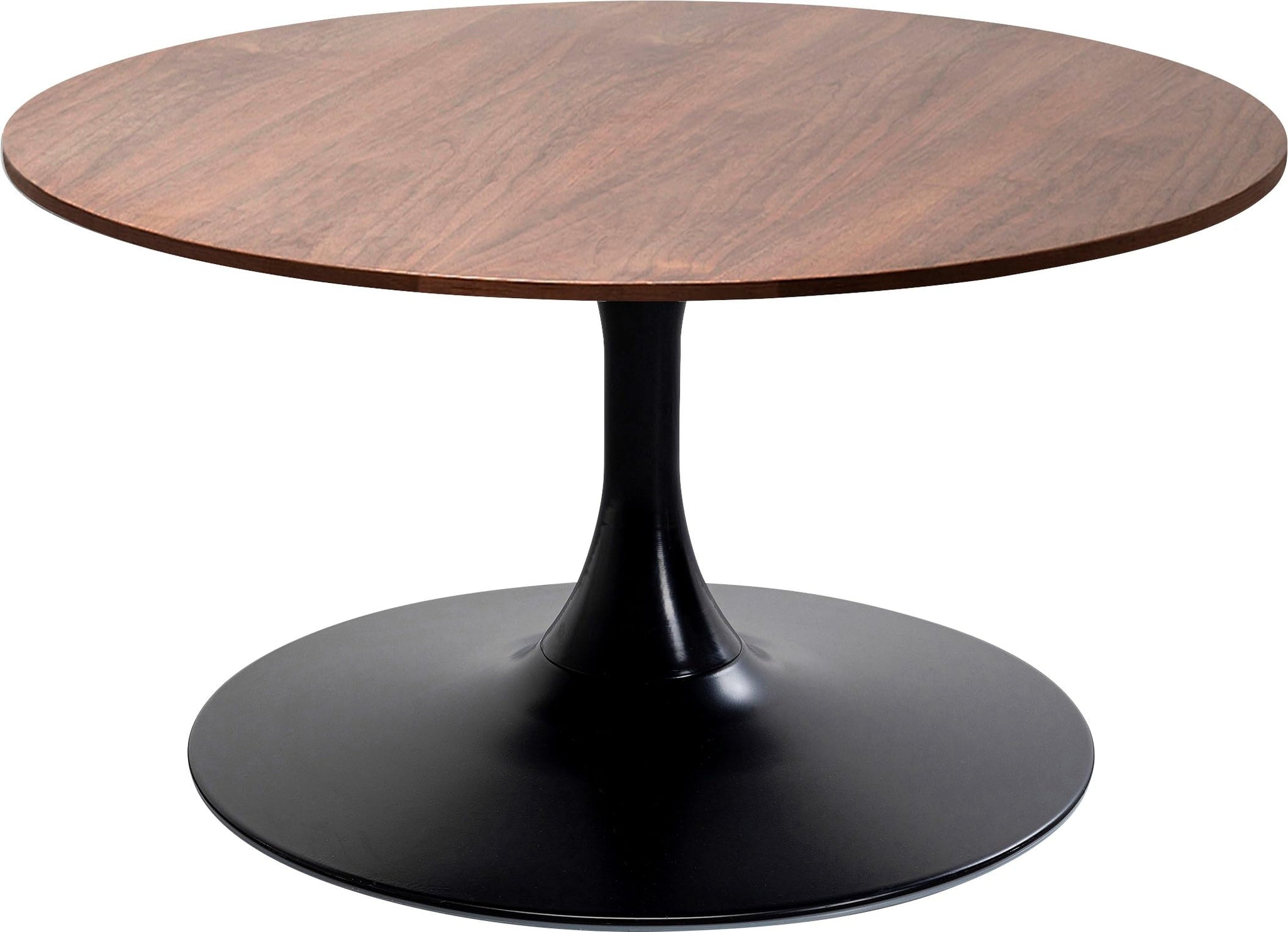 Kare Design Schickeria Table Basse en Noyer, Noir/Marron, diamètre 80 cm, Table d'appoint, Table de Salon, Aspect Bois, Structure en Acier, Ronde, rétro