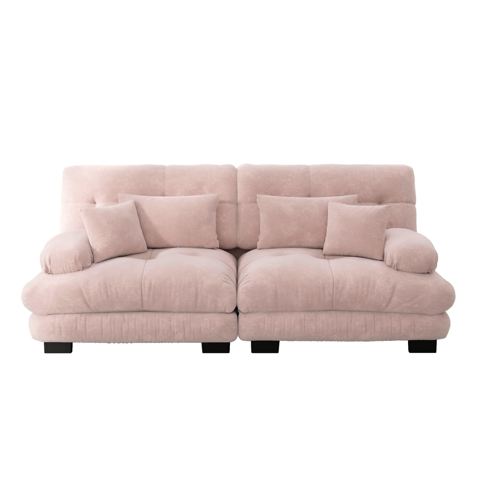 KOMHTOM Petit Canapé 2 Places Chenille avec Coussins Confortables, Accoudoir Courbe et Rembourré - Canapé Modulable Moderne (Rose)