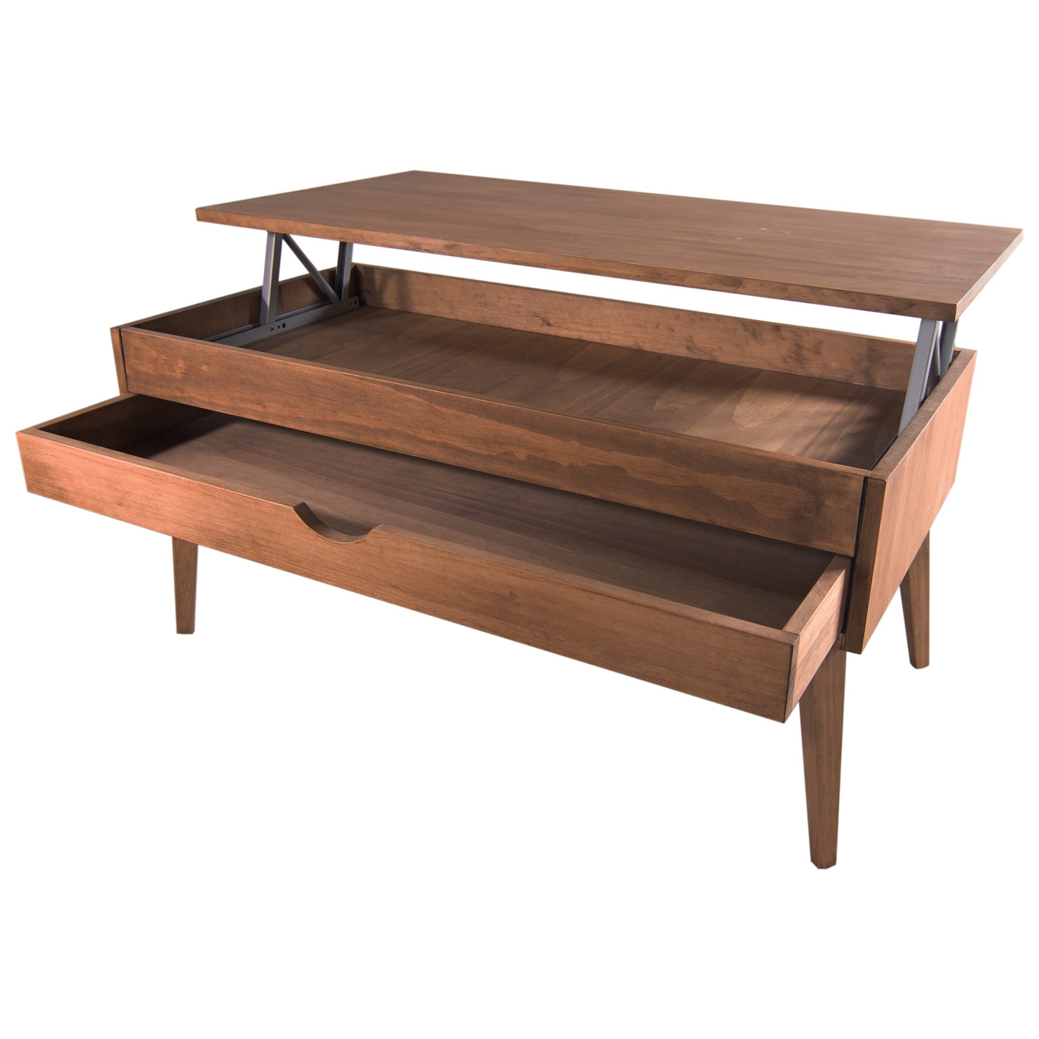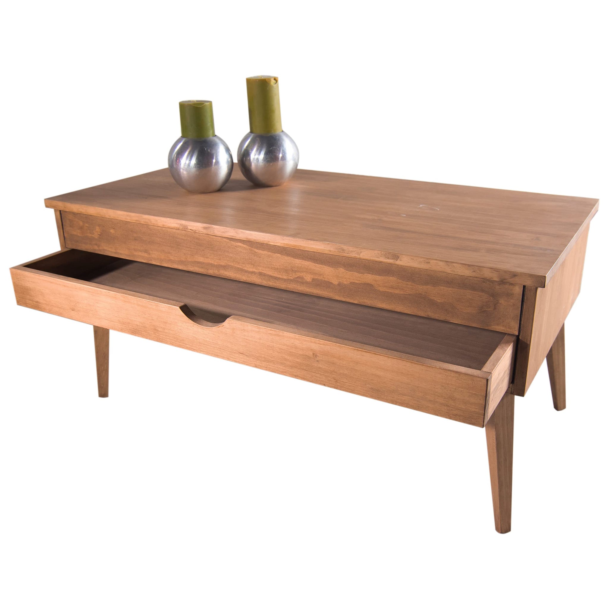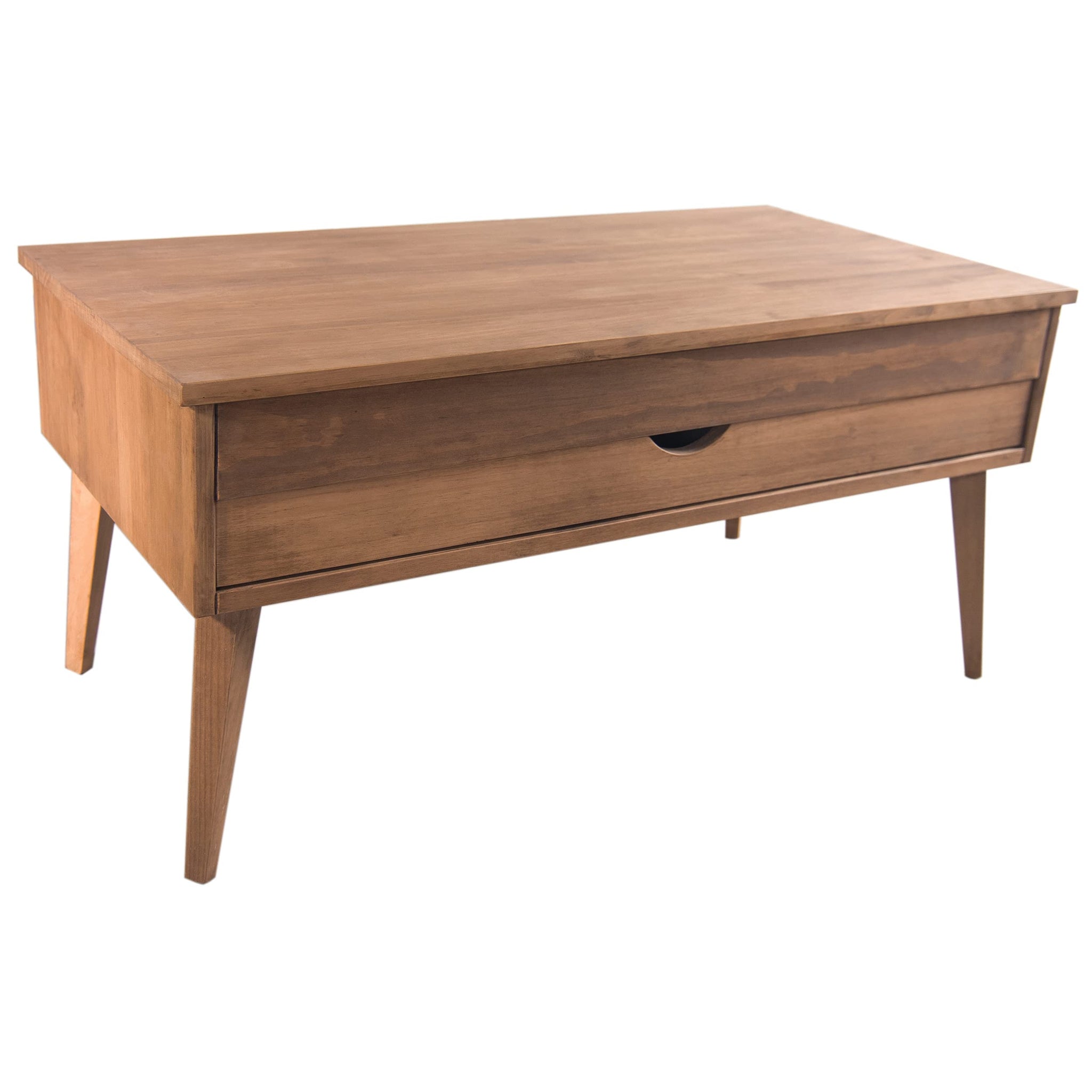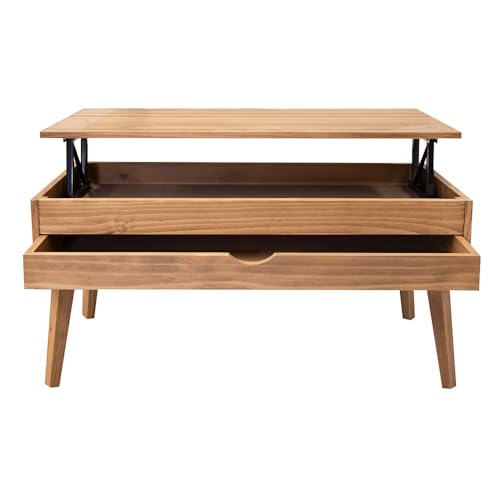 LoMasCasa Sonka Table basse relevable avec tiroir coulissant en bois naturel massif Disponible en couleur bois avec pied conique 100 x 50 x 48 cm