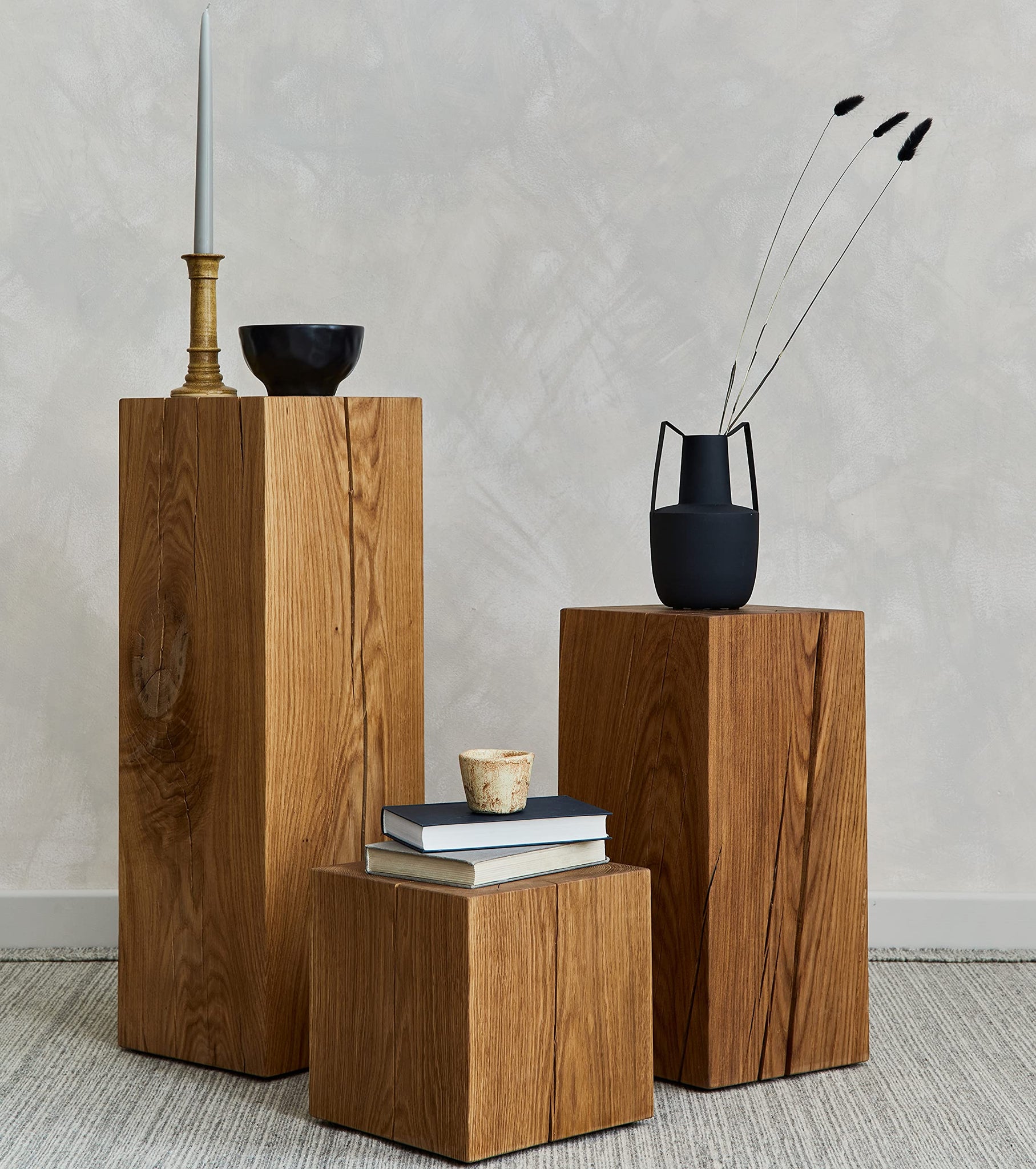 MS FACTORY Bloc de Chêne Massif - Cube en Bois - Rondin de Bois - Bout de Canapé, Colonne de Decoration, Support en Bois, Table Basse Bois, Piédestal pour Fleurs, Table de Chevet - 35 x 35 x 45 cm