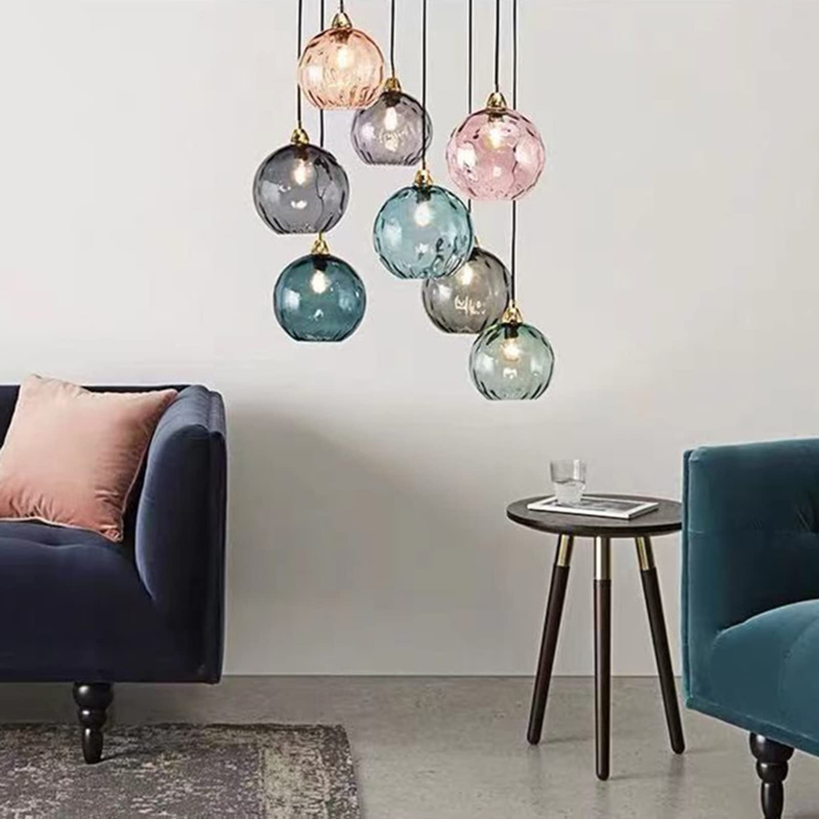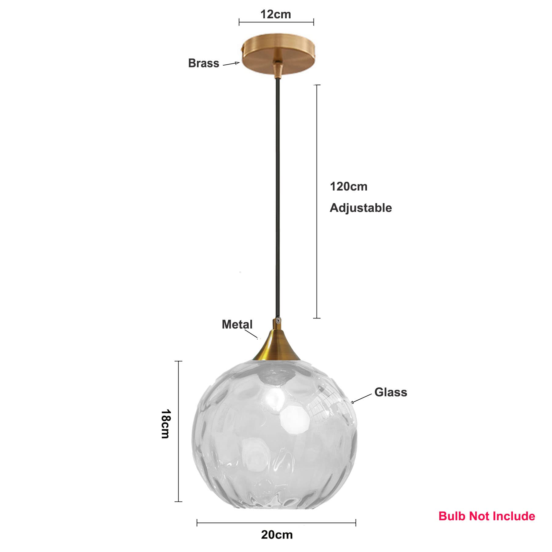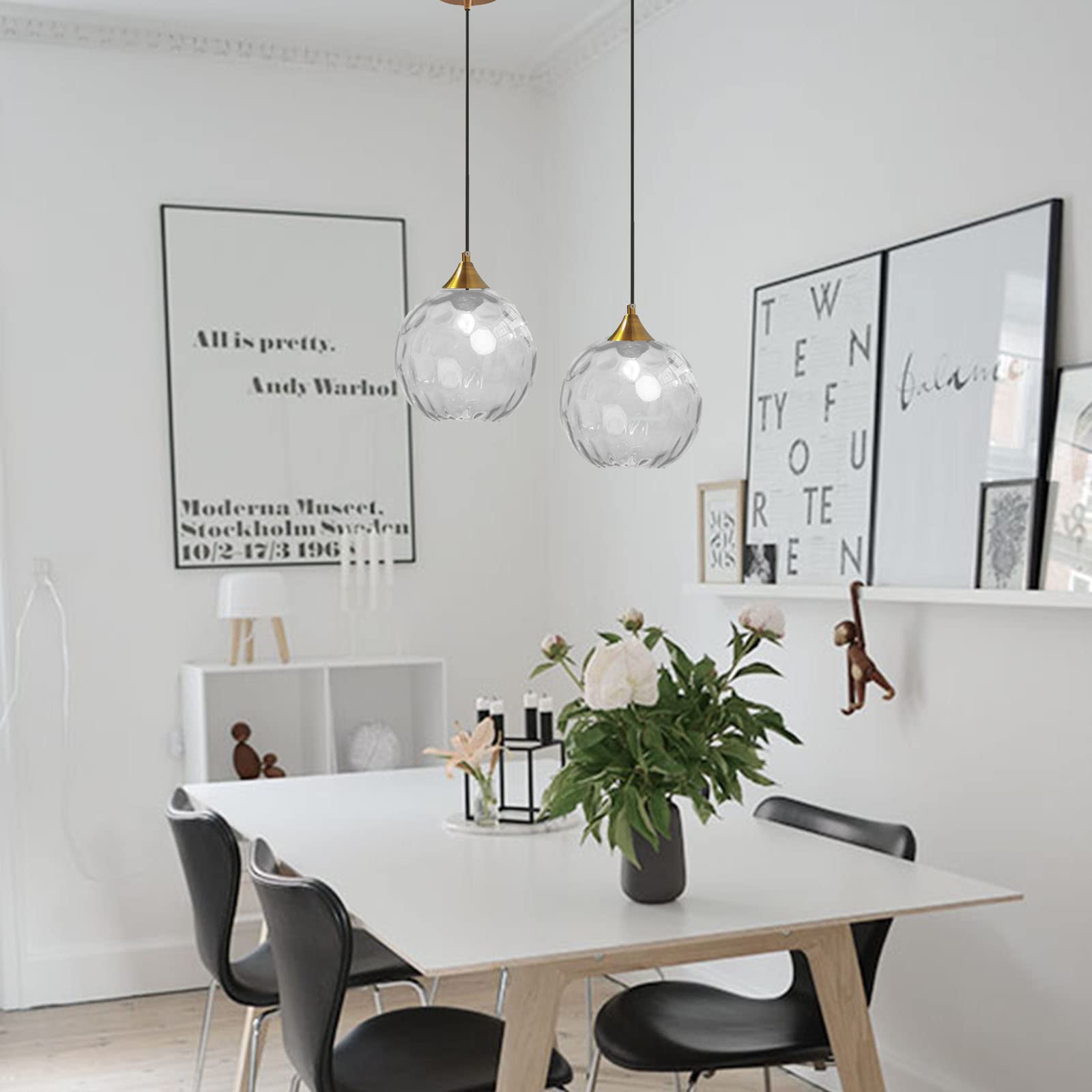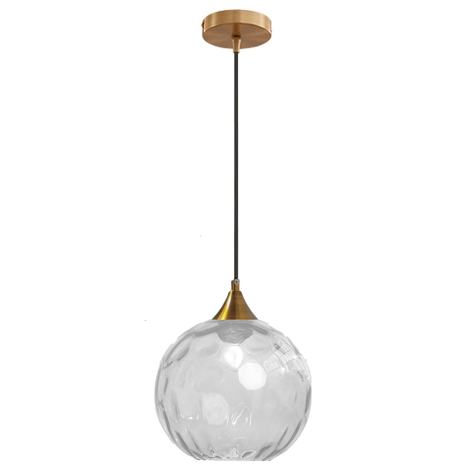 MZStech 20cm Transparent Globe en verre Suspension Base en bronze doré avec boule de verre Lampe de plafond suspendue pour îlot de cuisine, salle à manger et table de chevet (Transparent)