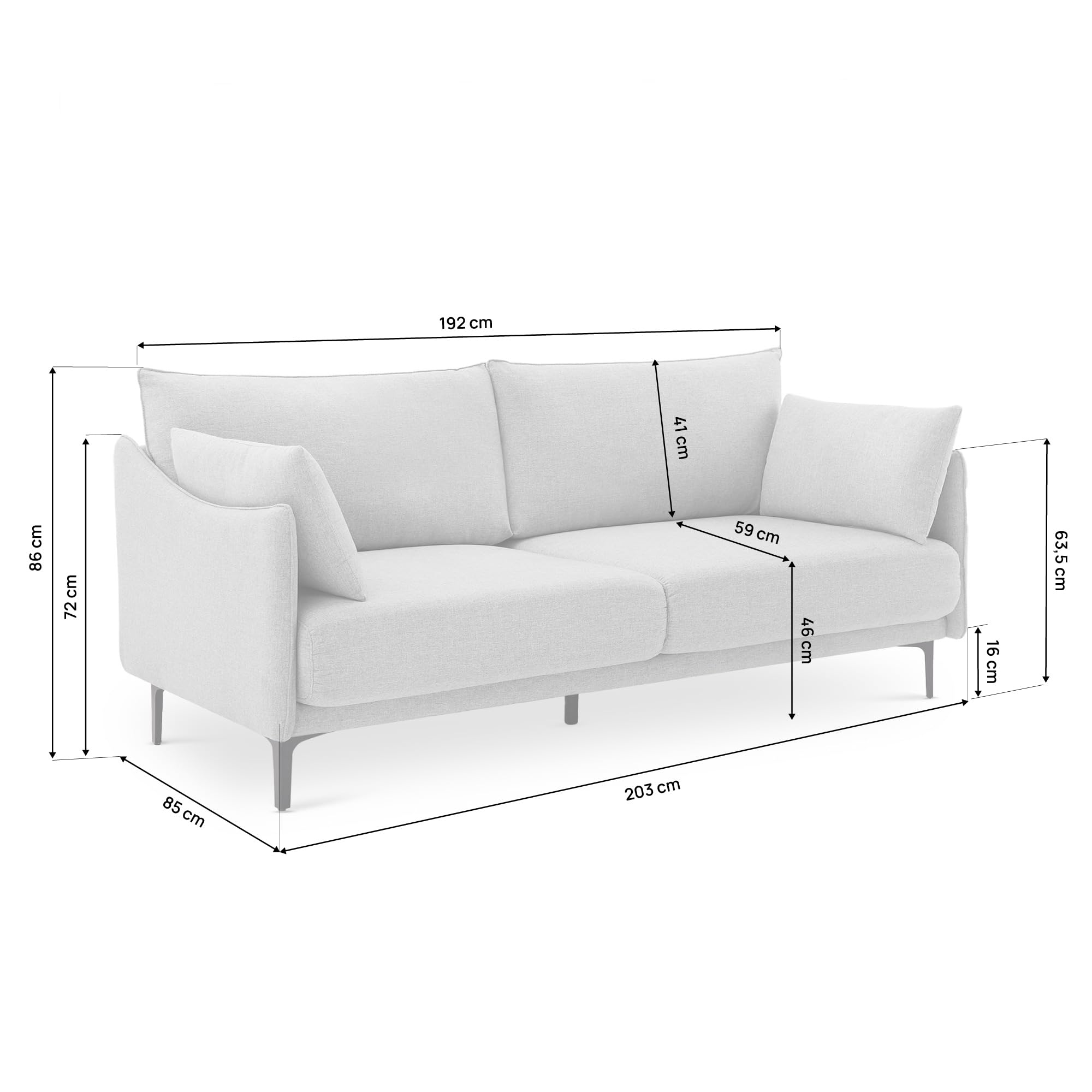 - 【CONFORT 3 PLACES】 Conçu pour offrir une assise spacieuse et accueillante, le canapé SASHA est idéal pour les moments de détente en famille ou entre amis. Ses coussins moelleux garantissent un confort optimal tout en conservant une bonne tenue. Grâce à ses dimensions généreuses, il constitue un choix parfait pour les salons modernes et conviviaux.