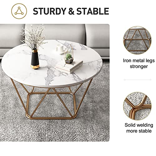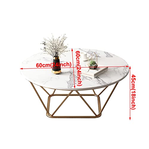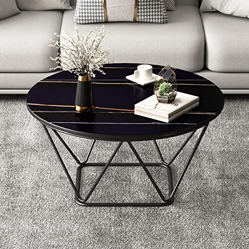Table Basse Ronde Moderne, Table Centrale de Salon avec Plateau Rond en Pierre frittée et Table de canapé à Cadre en métal Robuste pour Salon, Chambre à Coucher, Salle à Manger, Petit appart
