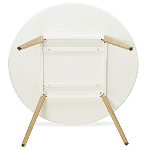 - Table ronde blanche avec pieds en bois. Marque: Alterego Design