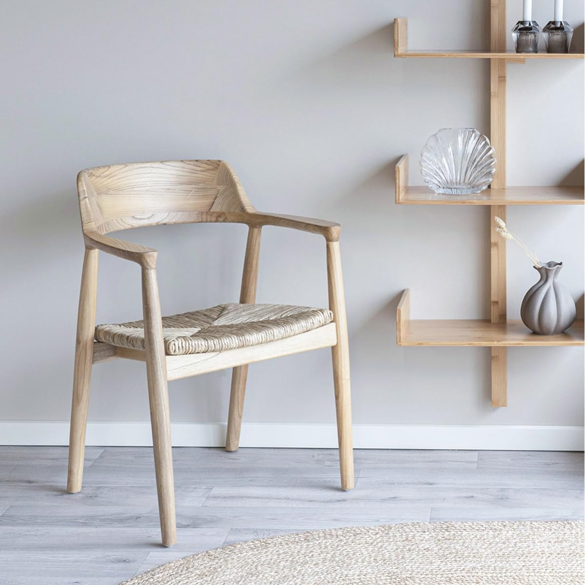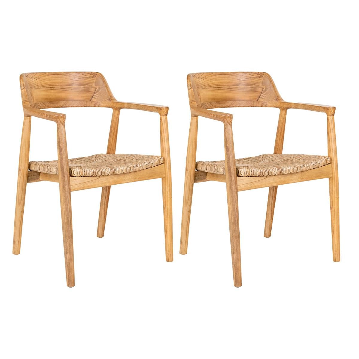 AltoBuy Vancouver - Lot de 2 Chaises en Bois de Sungai et Assise en Paille Naturelle