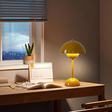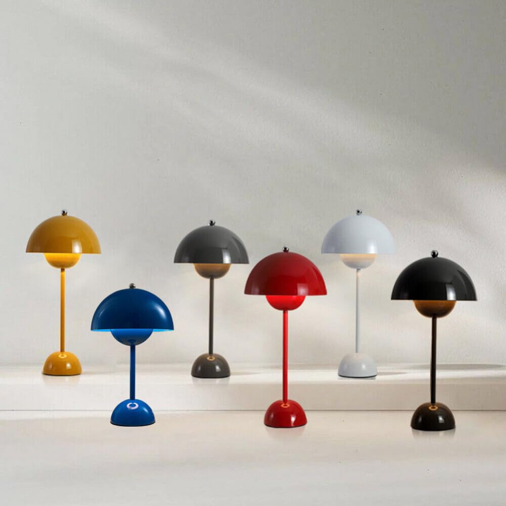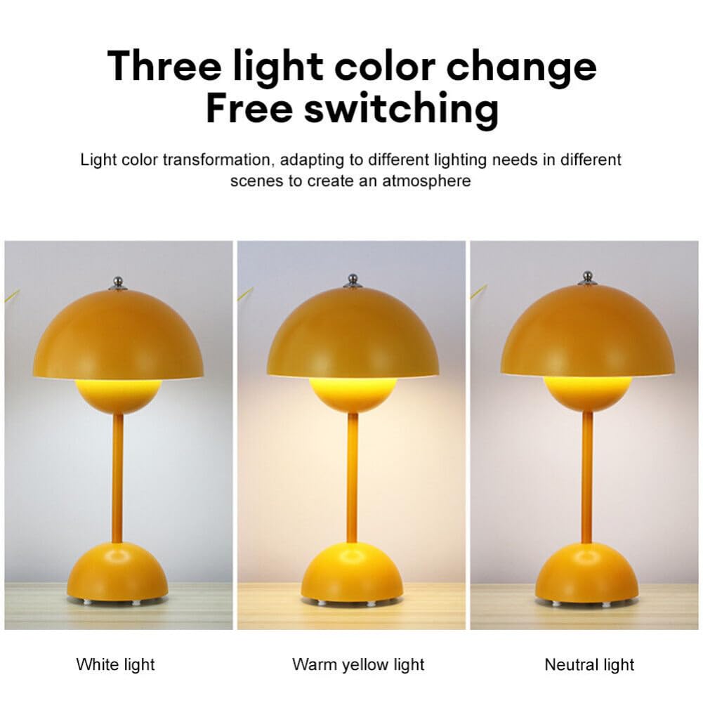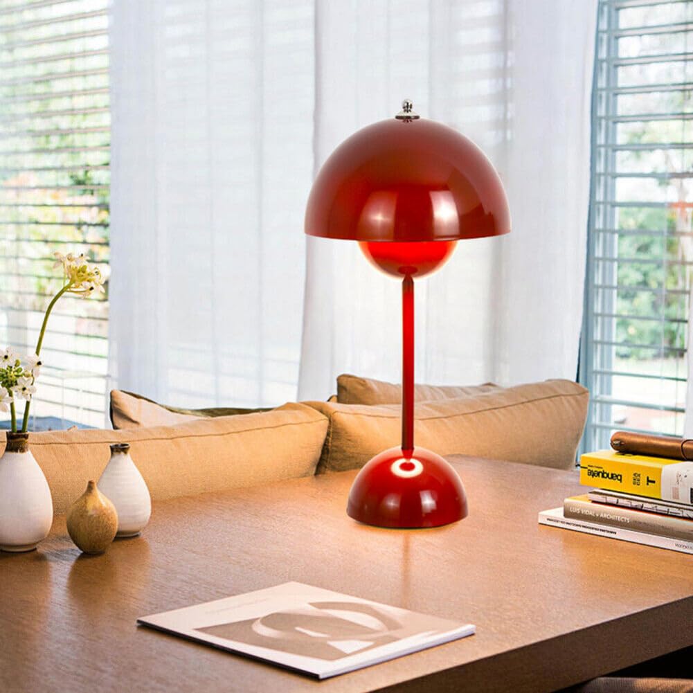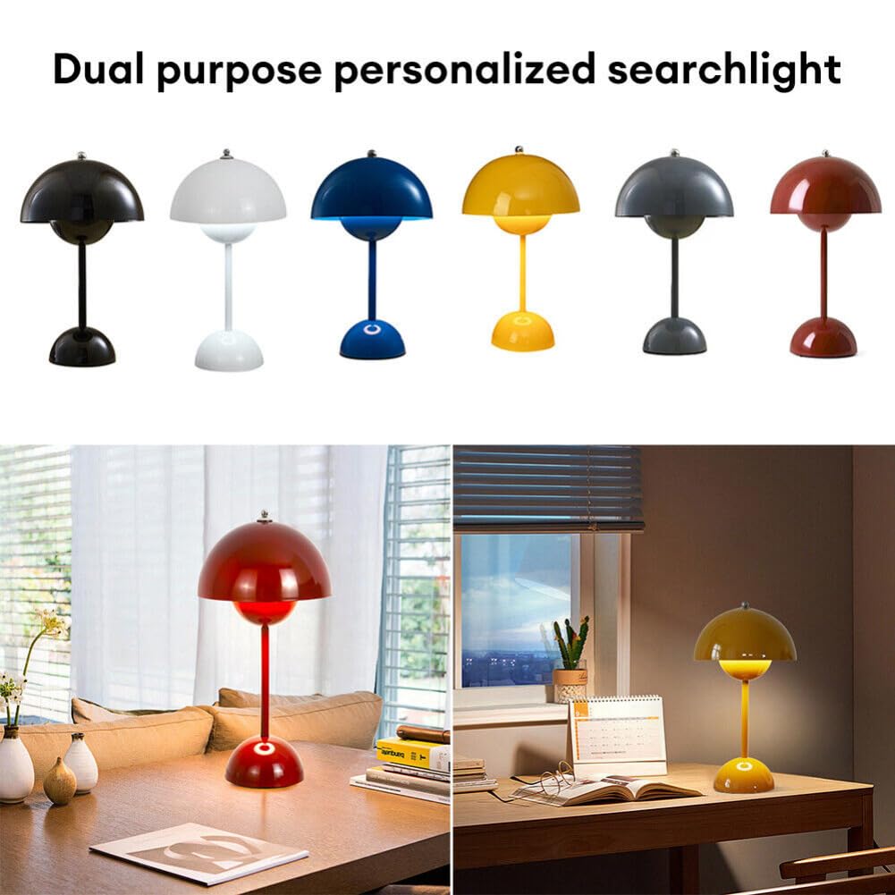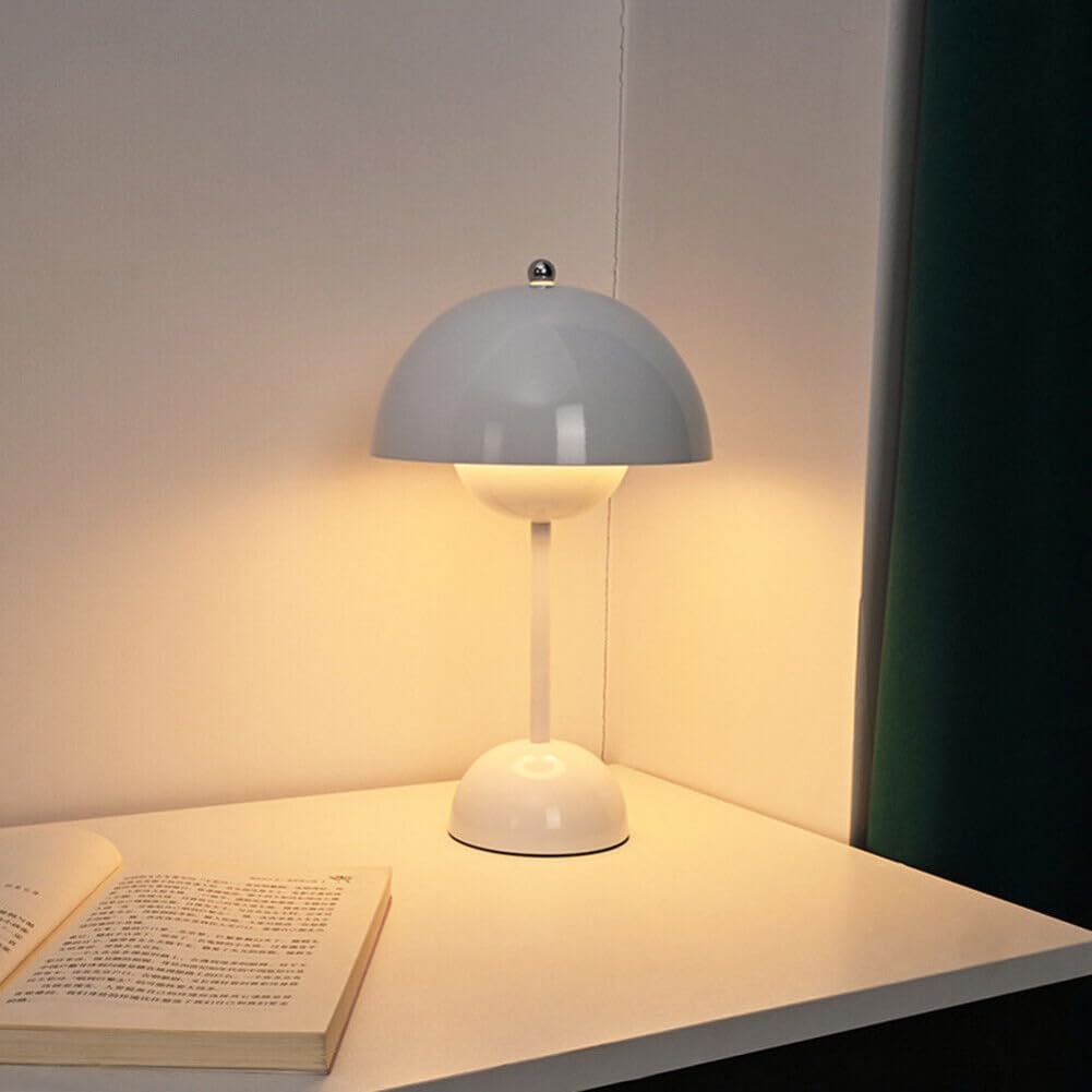 - Avec un design moderne en forme de champignon, la lampe de bureau fournit une lumière confortable dans un espace propre et bien rangé.