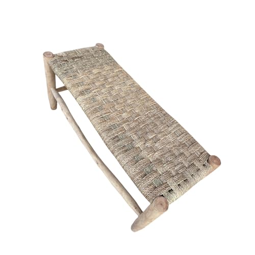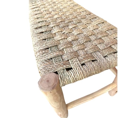 Banc en bois brut marocain et assise en palme tressée.Finition brute.Dimensions : 100 x 30 x 45 cm H environ.