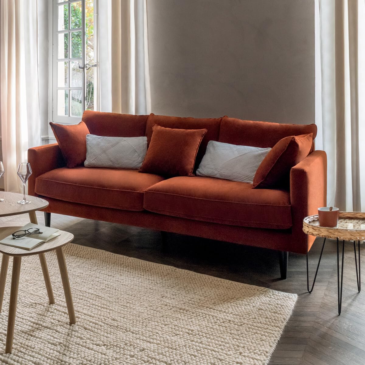 Atmosphera - Canapé 3 Places Candice Orange Ambre, Tissu Velours Déperlant, 194 cm, Fabriqué en France - pour Salon, Séjour