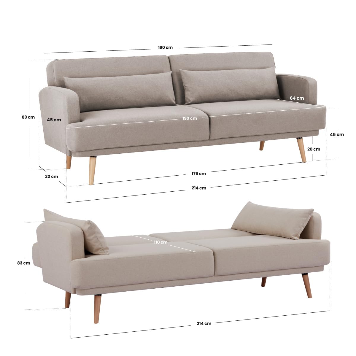 Trois personnes pourront profiter sur ce canapé banquette convertible. Sa mousse polyuréthane assure une assise ou un sommeil en tout confort. Avec ses dimensions généreuses et son style élégant, c'est un canapé tout trouvé pour créer une ambiance cosy. Vous noterez également ses jolis pieds en hêtre qui allègent sa silhouette.
