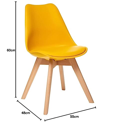 Atmosphera Créateur d'Intérieur - Chaise Baya Jaune - Plastique et Hêtre - Salle à Manger, Cuisine, Bureau, Salon - Confortable Coussin Intégré