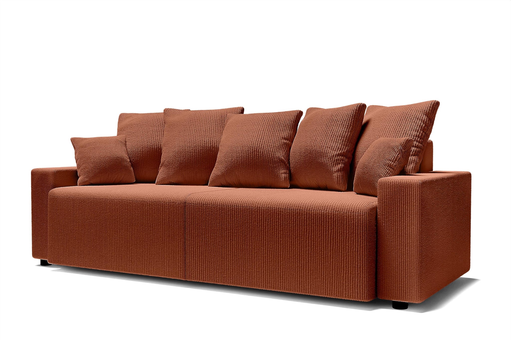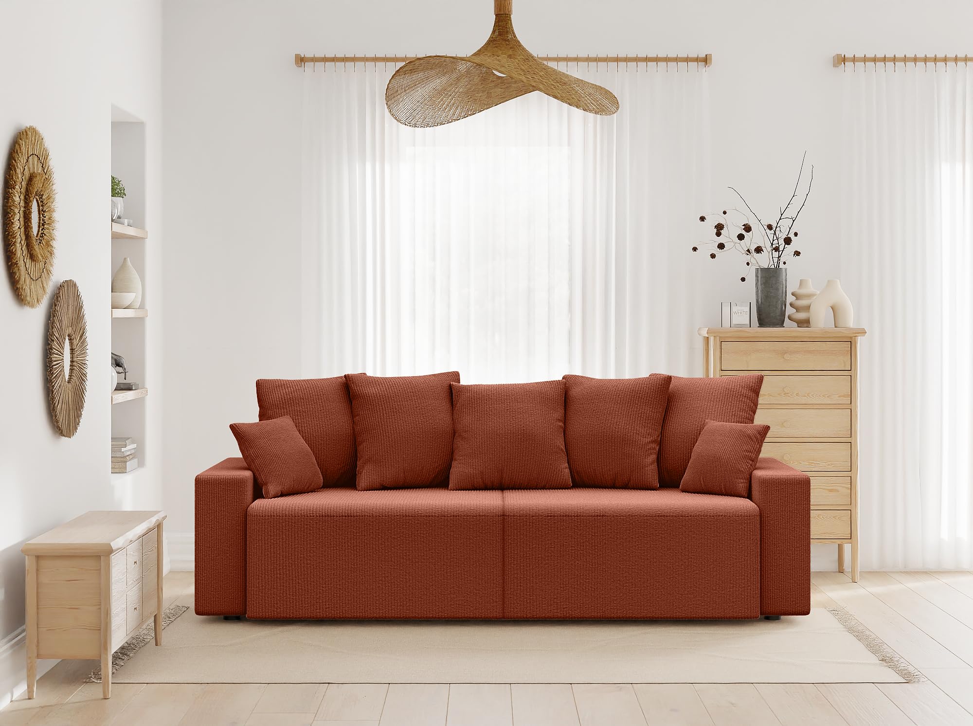 BAÏTA Canapé Droit Alma 3 Places Convertible en Velours côtelé Terracotta