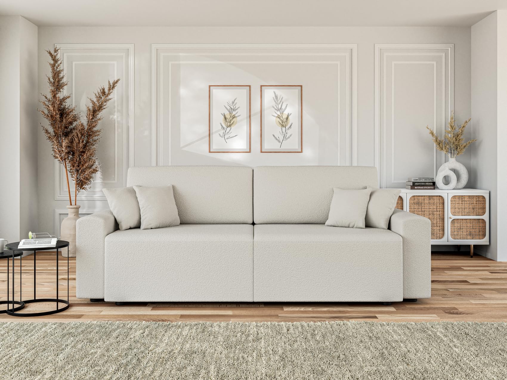 BAÏTA Canapé Droit Milo 3 Places en Tissu Bouclette Blanc