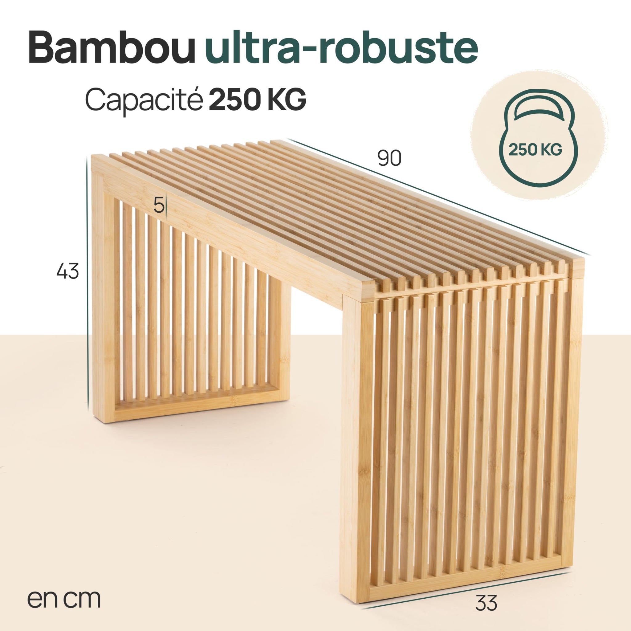 Banc en Bambou – Meuble d'entrée ou Salle de Bain 90x33x43 cm, supporte Jusqu’à 250 kg – Banc Pratique et Décoratif pour Rangement, Meuble Salon ou Salle de Bain