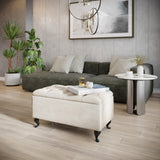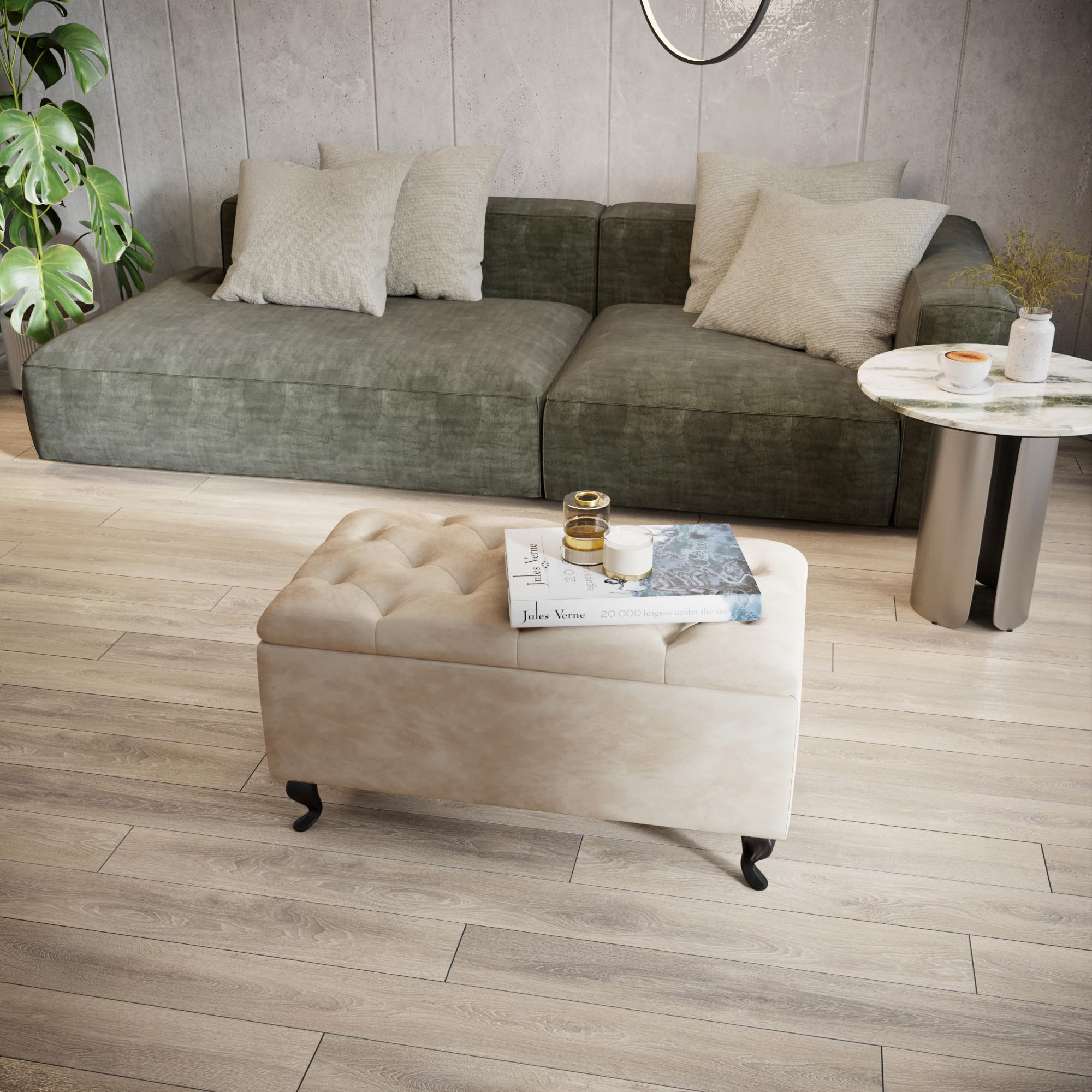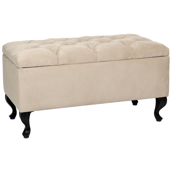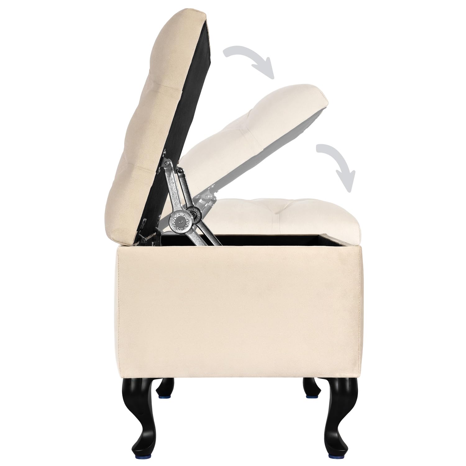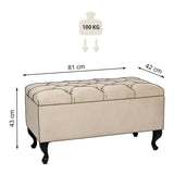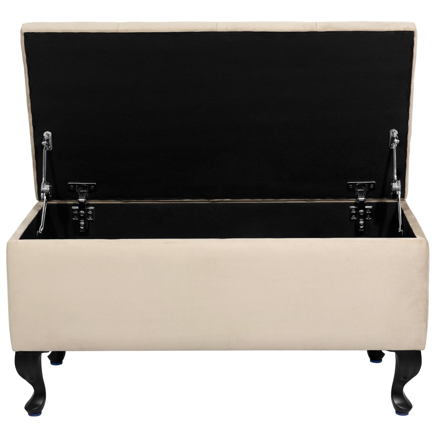 Banc rembourré de Rangement MODIANO BL 81x42cm - Velours Beige, Siège, Banquette, Coffre de Stockage avec Couvercle, Pouf pour Salon Chambre Entrée Couloir Coiffeuse Bout de Lit