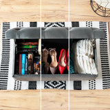 - POLYVALENT: Le pouf peut être utilisé comme tabouret à chaussures dans l'entrée, repose-pieds dans le salon, fauteuil de toilette, siège additionnel d'membres de la famille et d'invité, coffre à jouets. Il est parfait pour ranger : linge de lit, chaussures, vêtements, livres et bien d'autres articles. Ca banquette est vraiment polyvalent.