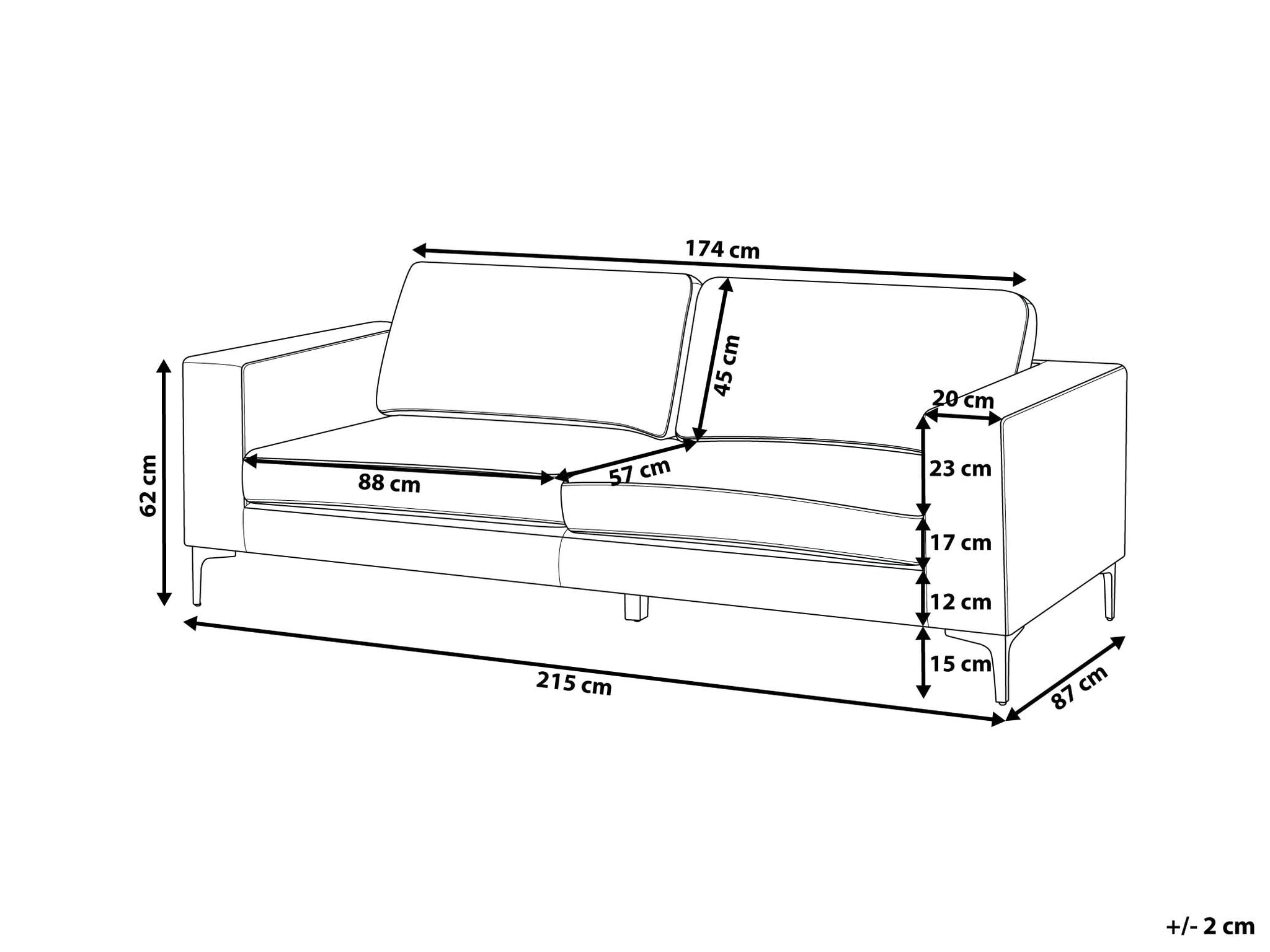- Dimensions (Largeur x Profondeur x Hauteur) : 215 x 87 x 84 cm