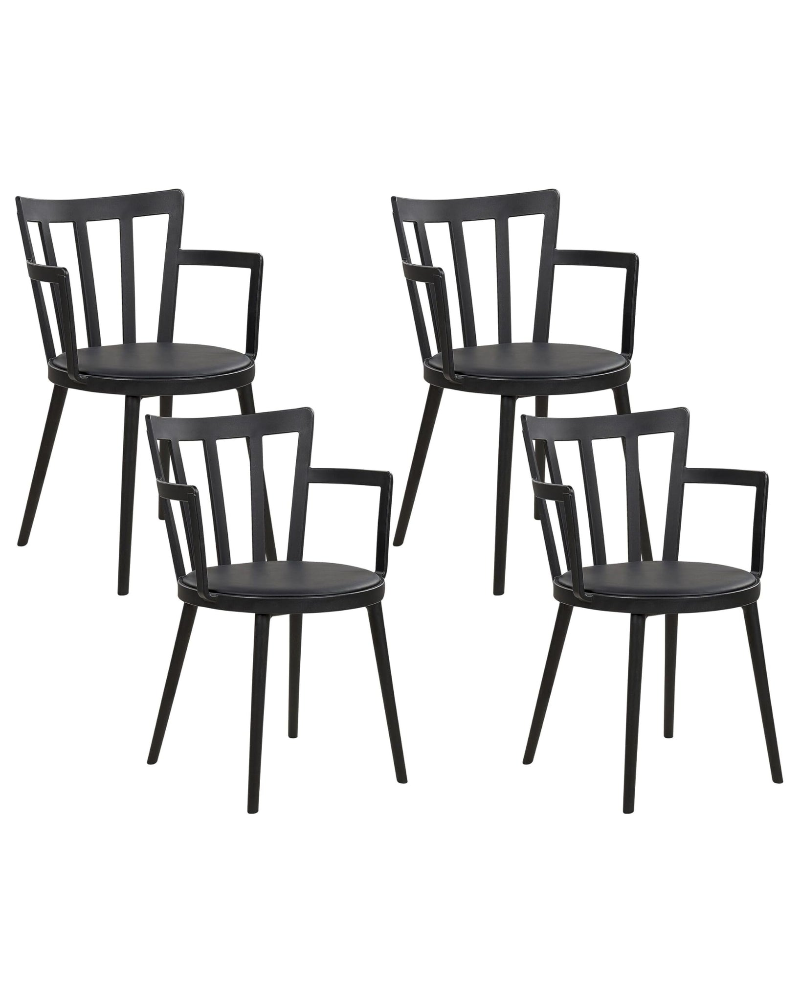 Beliani Chaises de Salle à Manger en Matière Synthétique et Cuir PU Noires Lot de 4 Morill
