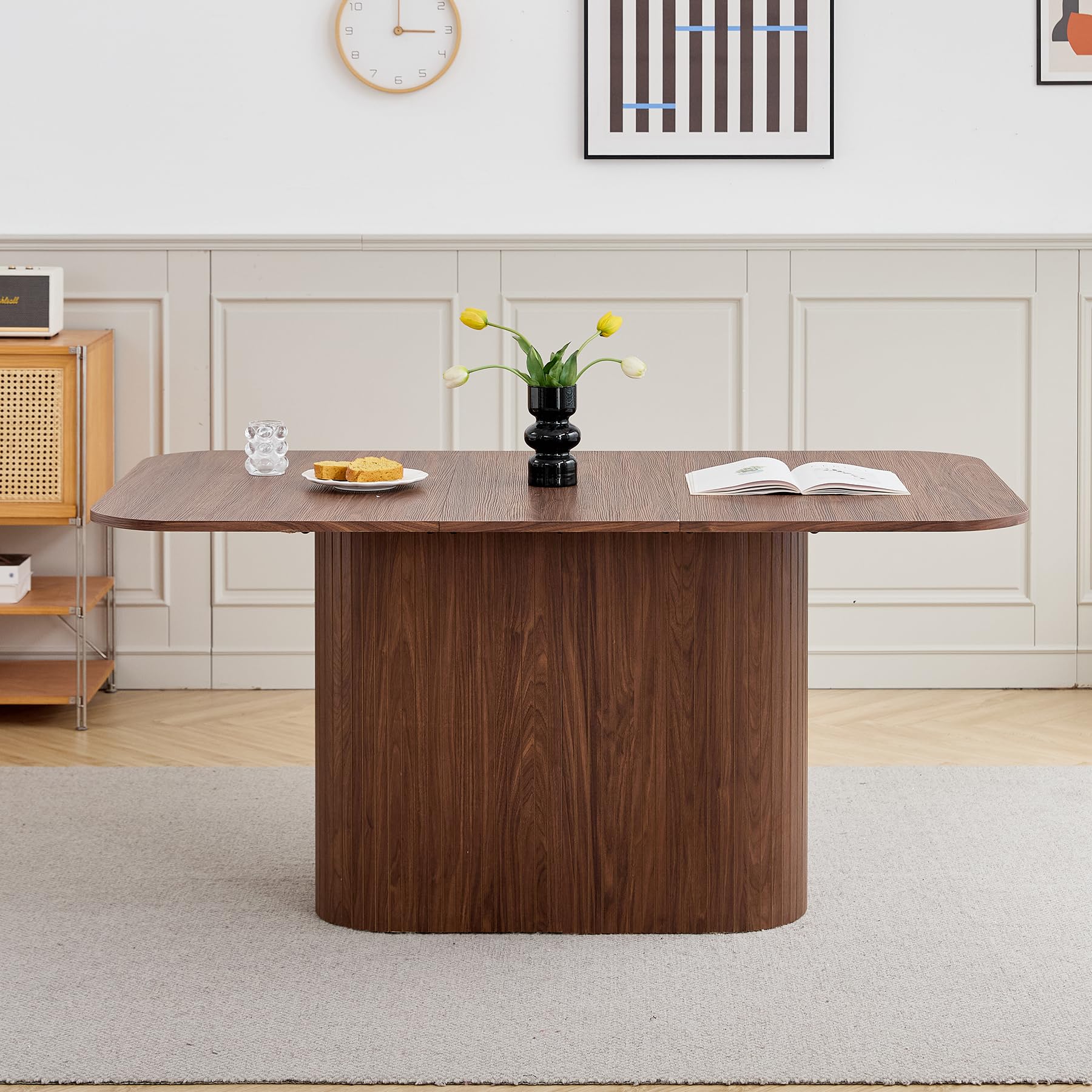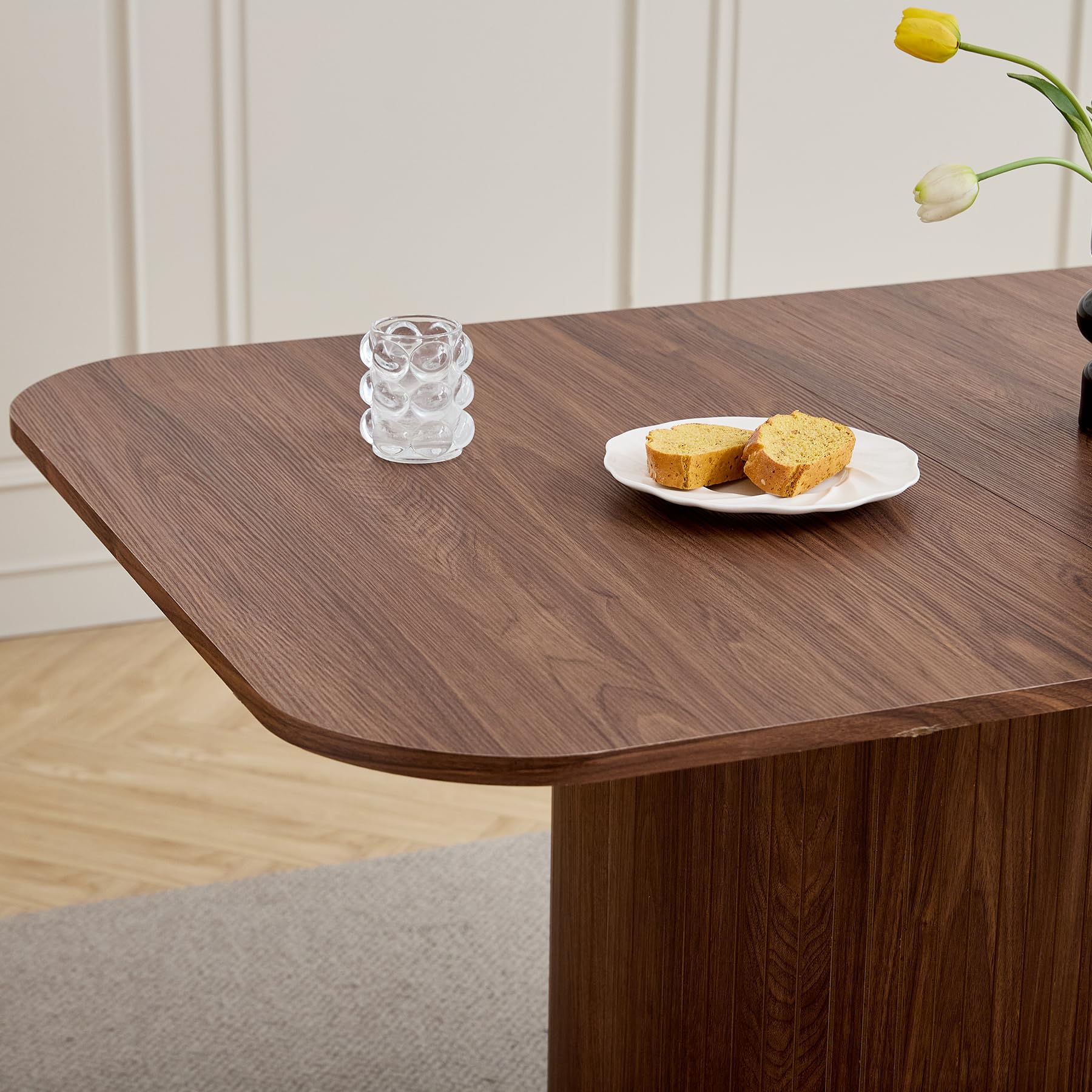 - Cette table à manger robuste est fabriquée en MDF durable avec un magnifique revêtement en finition grain de bois, créant une esthétique organique appréciée. Les coins ovales de notre table à manger sont conçus non seulement pour rehausser son élégance, mais aussi pour minimiser les risques de chocs et d'éraflures.