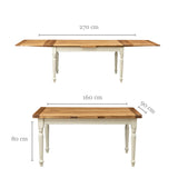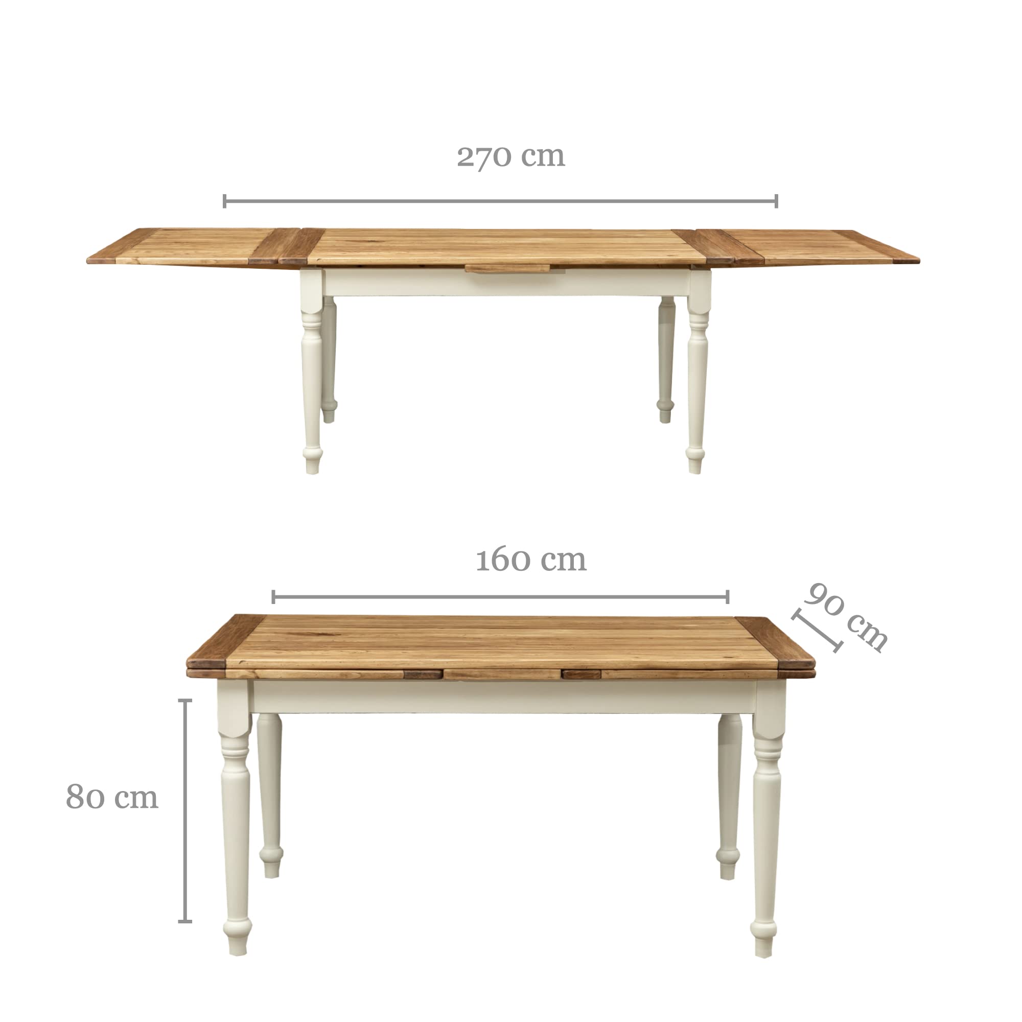 Table rectangulaire L 160 x P 80 x H 80 cm en bois massif de tilleul extensible jusqu'à 215 ou 270 cm grâce aux deux rallonges pratiques de 45 cm chacune. Idéal pour compléter avec une touche de charme country chaque environnement, il est garanti en solidité et qualité par la fabrication artisanale unique et minutieuse. Pour les amateurs de décoration country et pour ceux en général aiment décorer la maison avec rustique, en plus de cette table solide et magnifique, des biscuits propose une large gamme d'articles d'ameublement intérieurs, indispensables pour la décoration de la cuisine et pour la décoration de la maison.