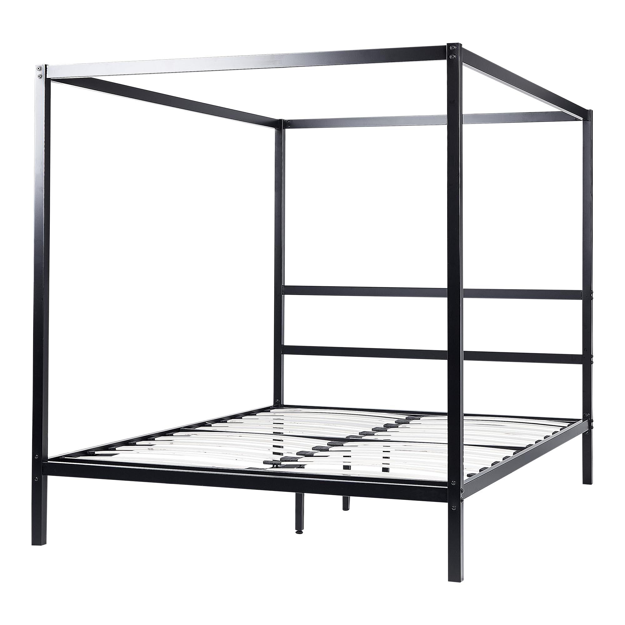 Cadre de Lit à Baldaquin Double avec Lattes 160 x 200 cm en Métal Noir Lestards