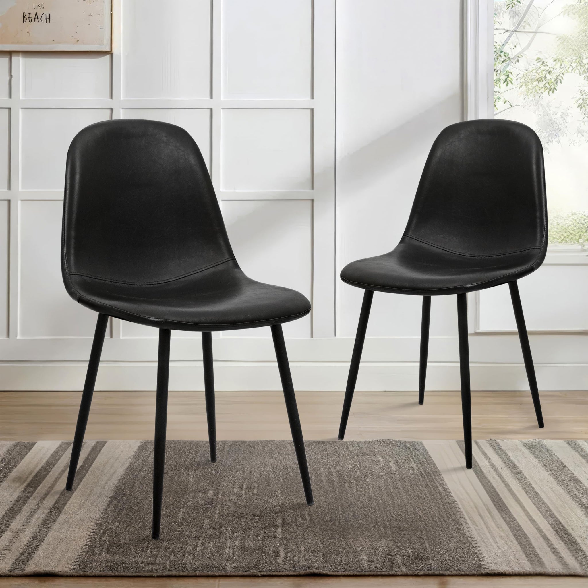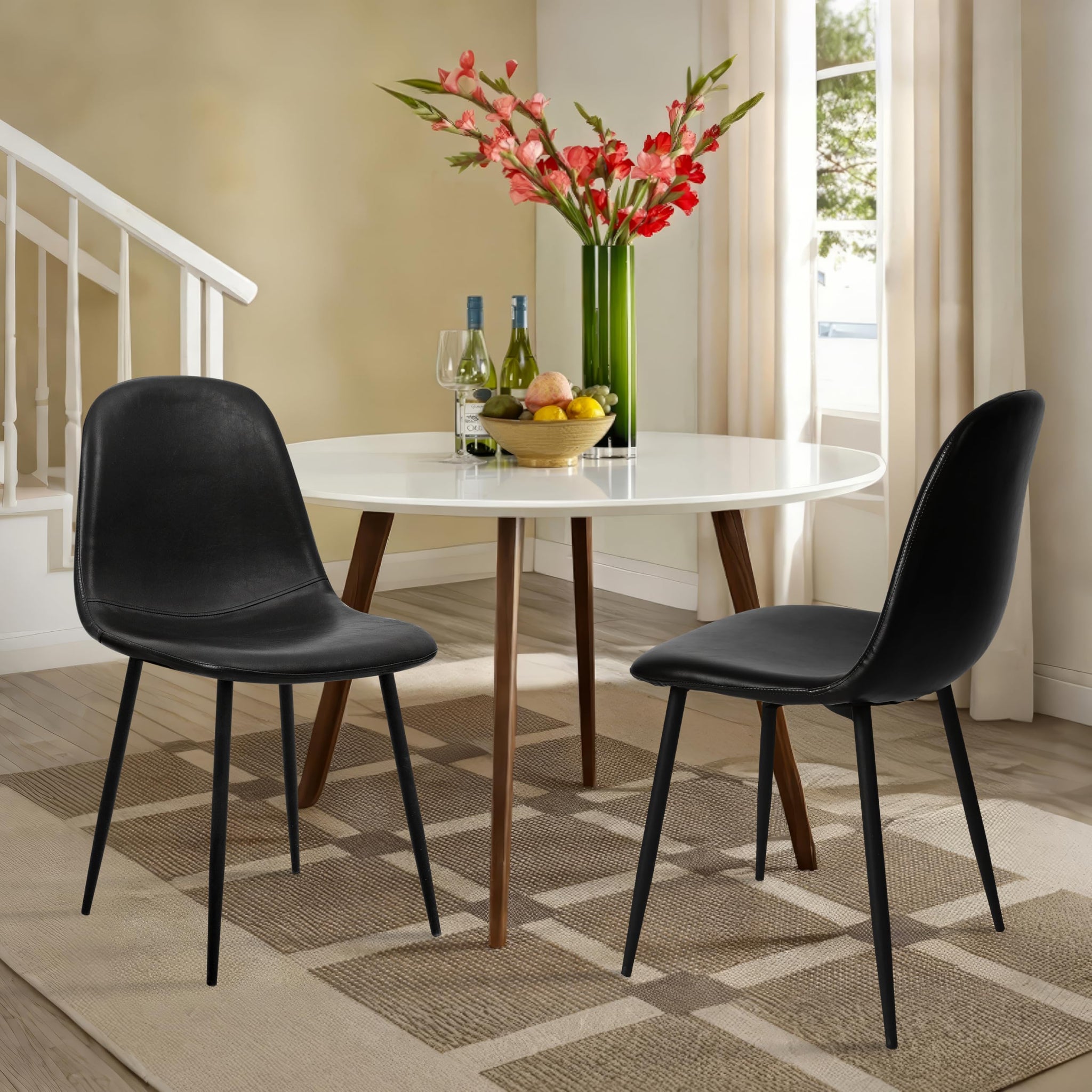 CangLong Lot de 2 chaises de Salle à Manger Chaises de Cuisine rétro rembourrées pour la Cuisine et la Salle à Manger, chaises scandinaves en Similicuir avec Pieds en métal, Noir