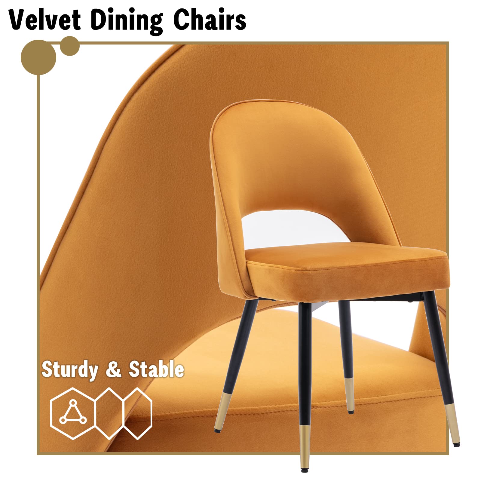 • Confortable - Les chaises latérales enveloppées dans un matériau en velours sont douces et agréables pour la peau, le coussin de siège rempli de mousse haute densité offre une sensation d'assise confortable et l'aspect simple s'intègre parfaitement dans n'importe quel espace.