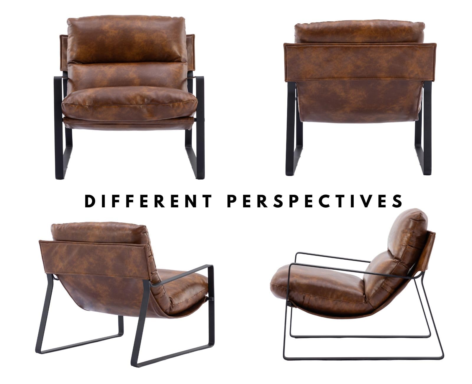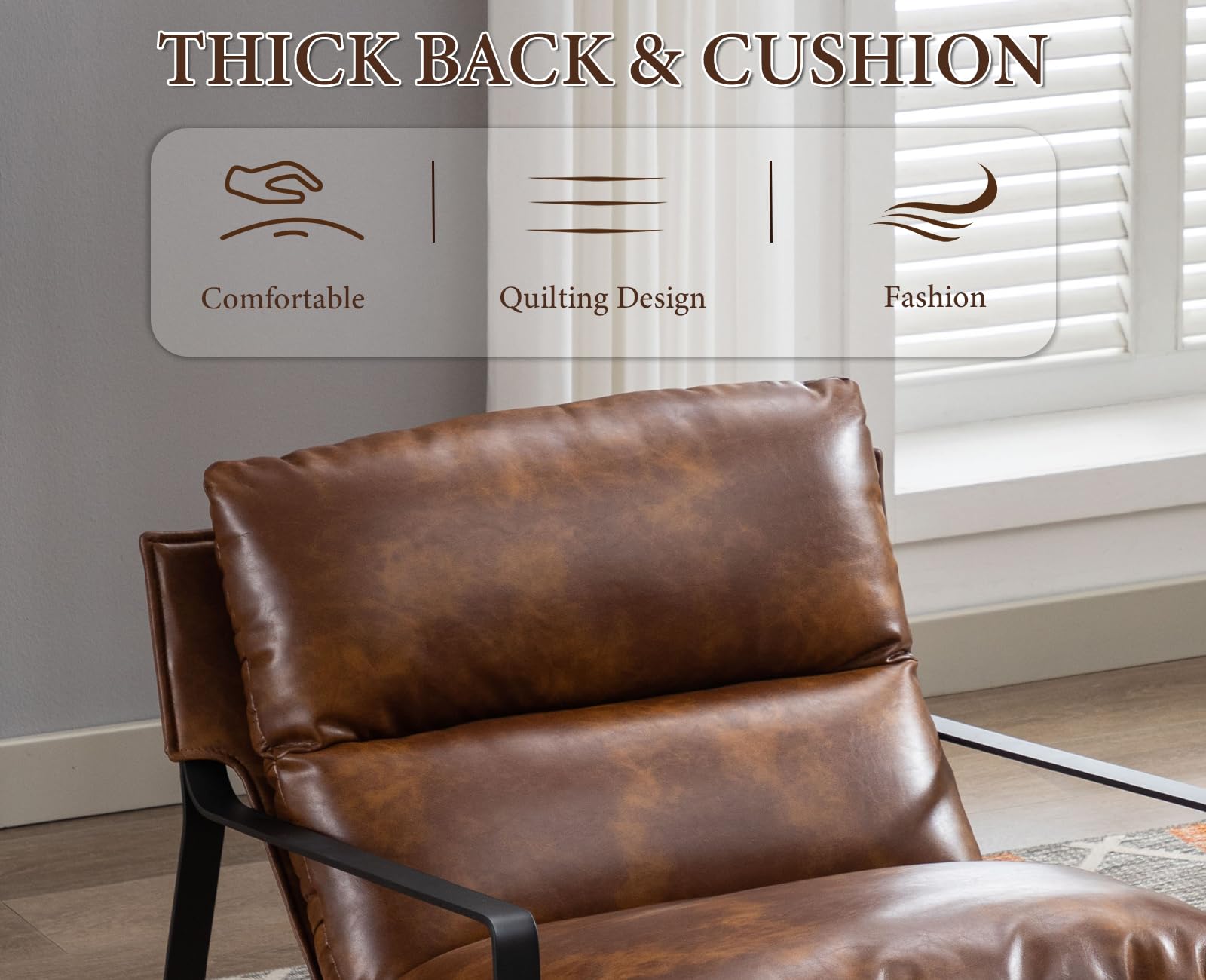chairus Fauteuil de Loisirs en Cuir PU Modern Chaise de Relaxation pour Salon Fauteuil de Chambre avec Cadre en Métal (Marron)
