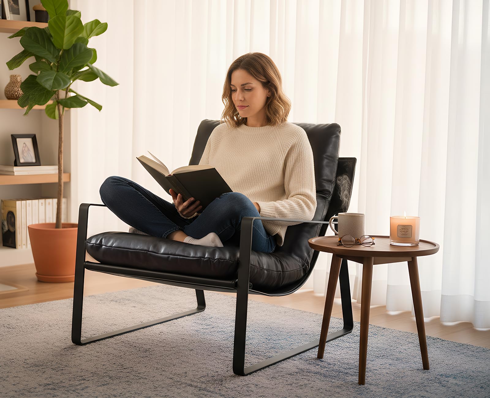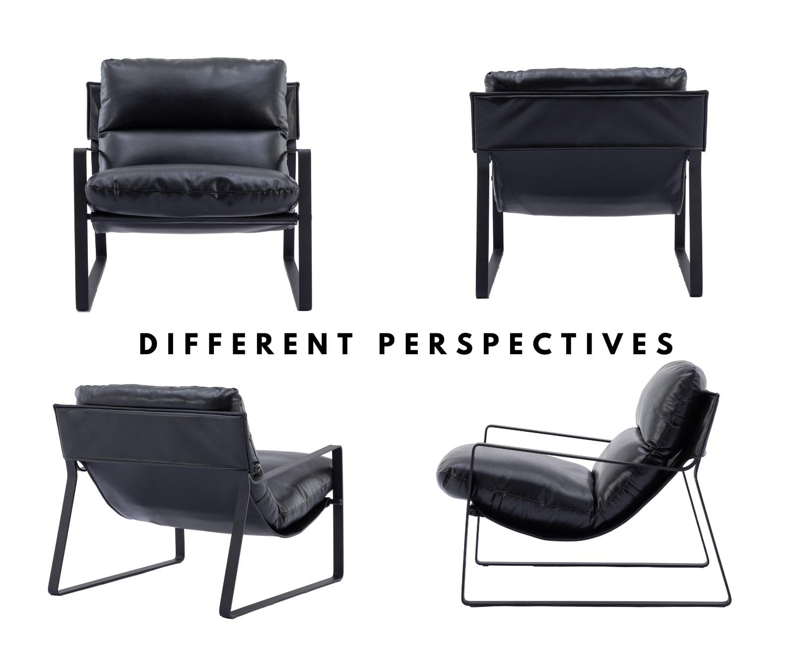 chairus Fauteuil de Loisirs en Cuir PU Modern Chaise de Relaxation pour Salon Fauteuil de Chambre avec Cadre en Métal (Noir)