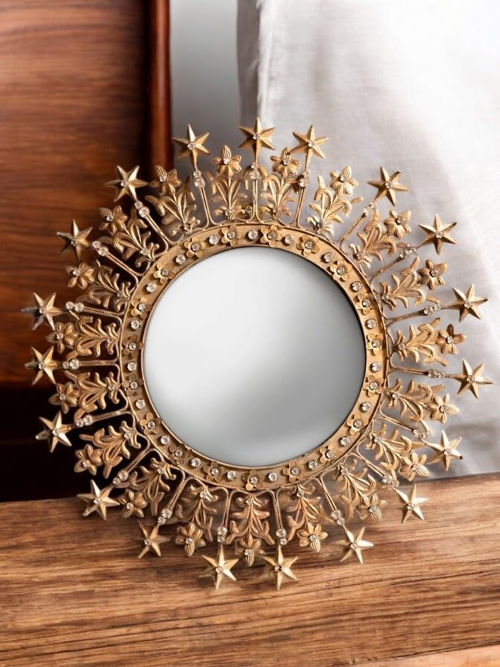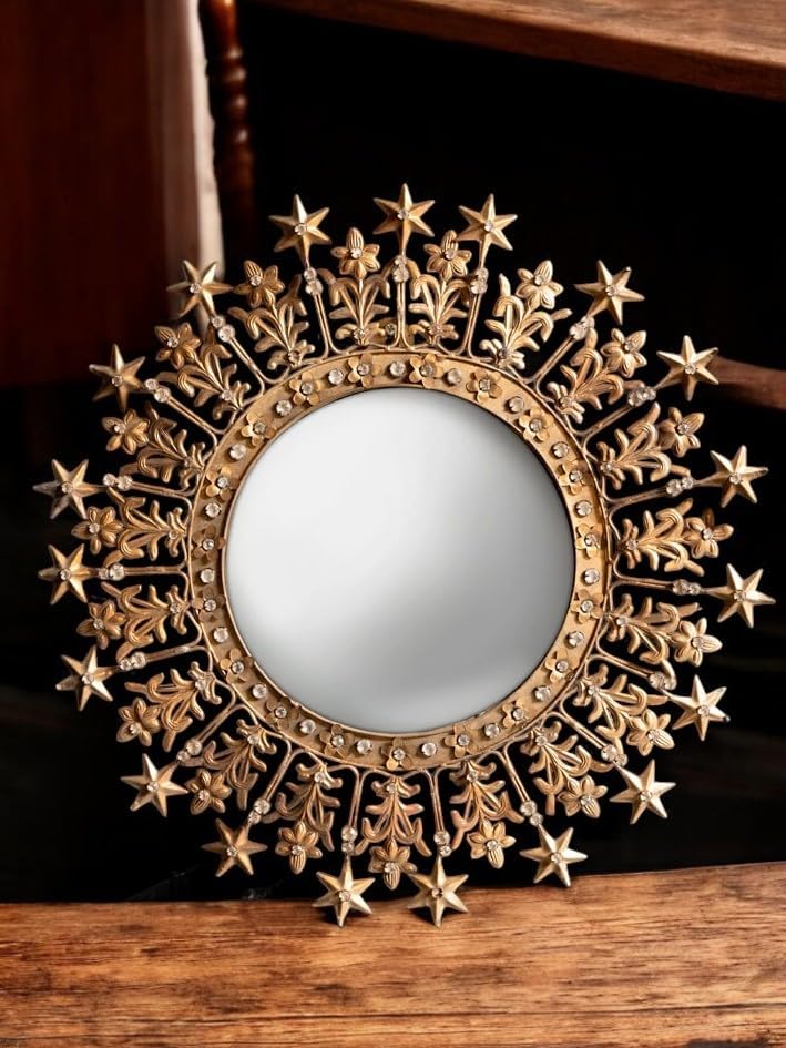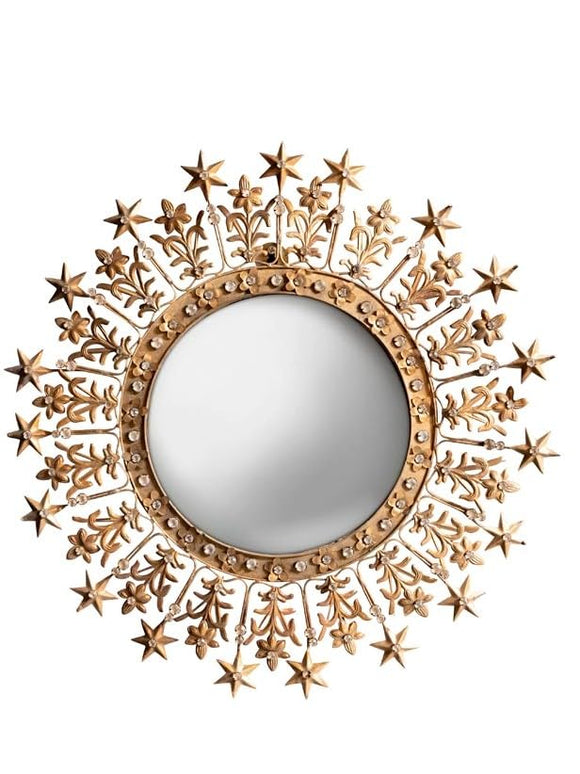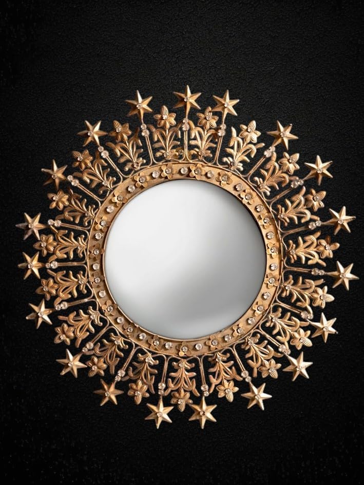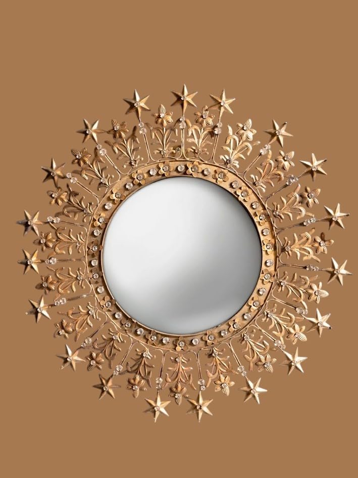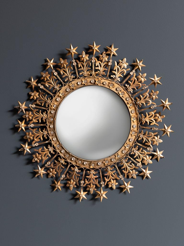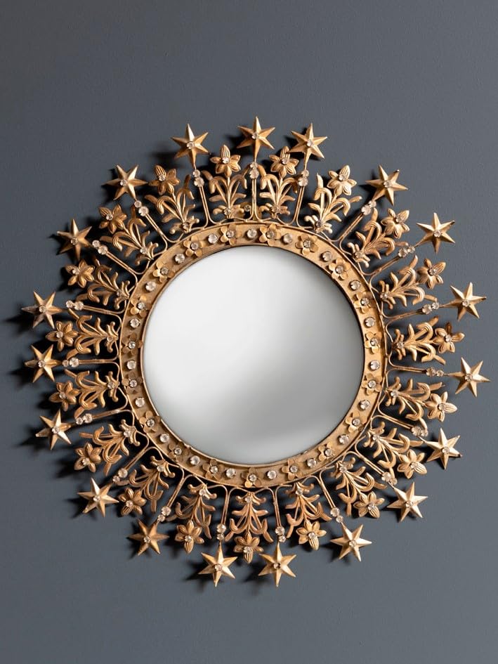 - Miroir décoratif unique: Ce miroir mural convexe est orné d'auréole d'étoiles en métal doré et serti de cristaux.