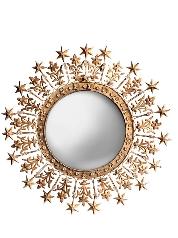 CHEHOMA Miroir décoratif Convexe serti de Cristaux Auréole d'étoiles dimenssion 47 cm (Diamètre 47 cm)