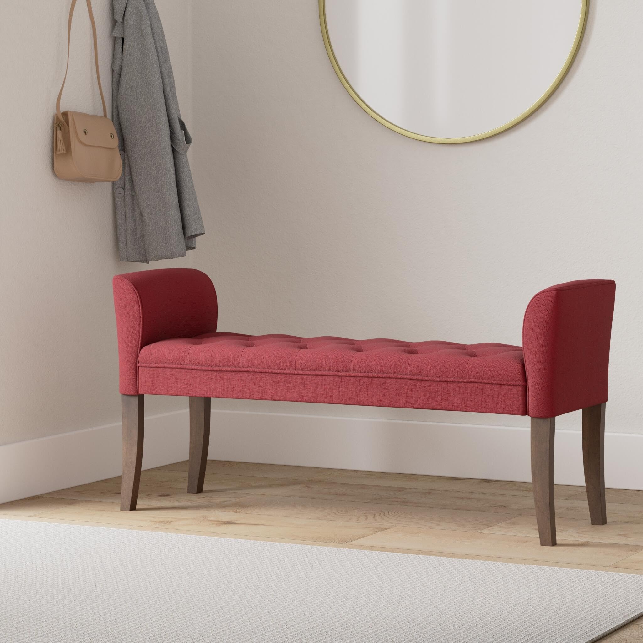 CLP Banquette Cleopatra en Tissu I Banc Rembourré avec Accoudoirs Style Chesterfiled I Piétement en Bois I Banquette Capitonnée 133 x 64 x 43cm, Couleur:Rouge, Couleur du Cadre:Antique foncé