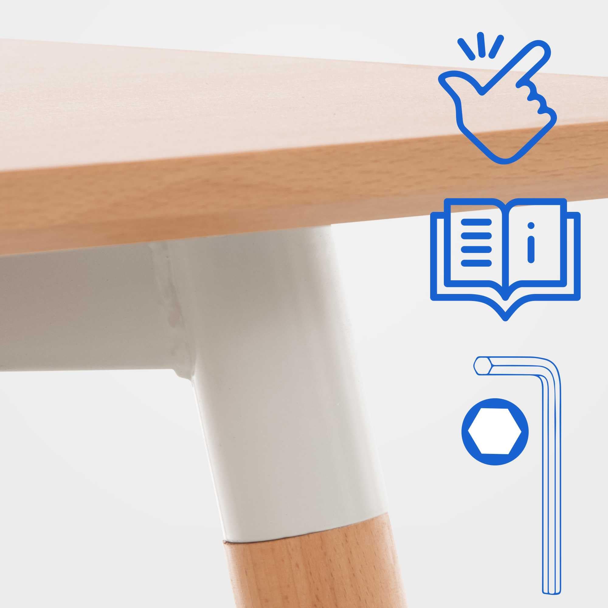 - Stable et sûre - Grâce à son châssis robuste en bois de hêtre et à ses protections de sol réglables, la table de salle à manger est sûre, même sur des sols irréguliers.