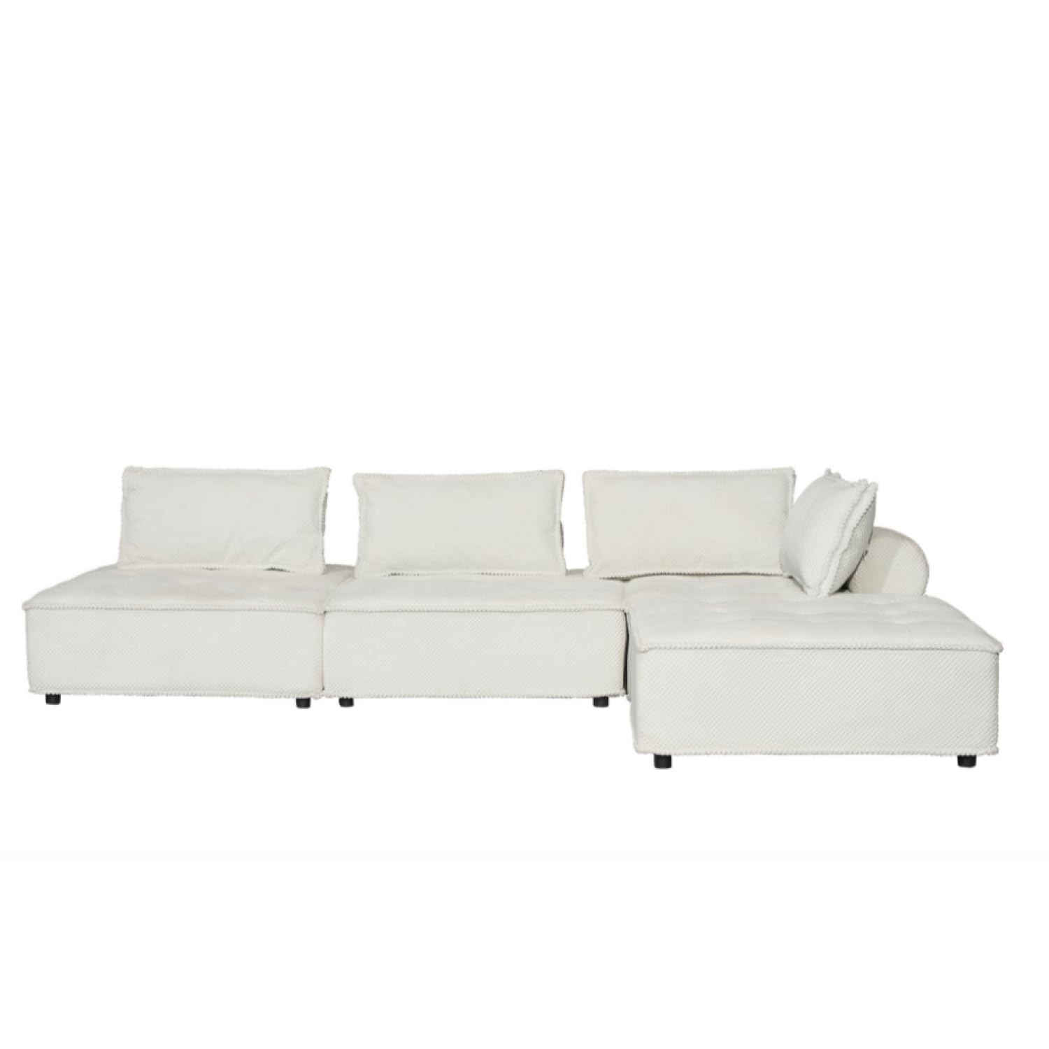 - [Design modulable et élégant] : Ce canapé d'angle STAVA 4 places en velours texturé blanc apporte une touche de sophistication à votre salon. Ses lignes épurées et modernes s’intègrent harmonieusement dans tout style d'intérieur, qu'il soit contemporain, scandinave ou classique.